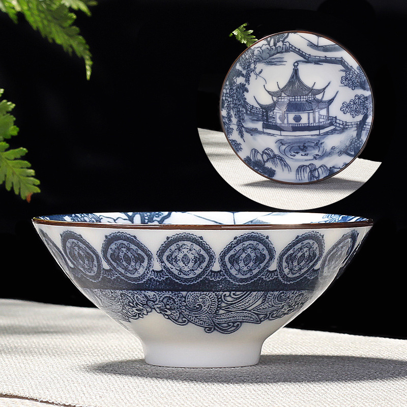 single teacup-white jade-large-pavilion pavilion