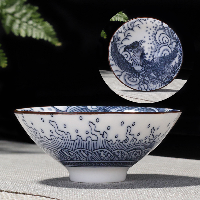 single teacup-white jade-small size-prosperity brought by the dragon and the phoenix-phoenix