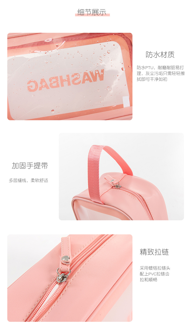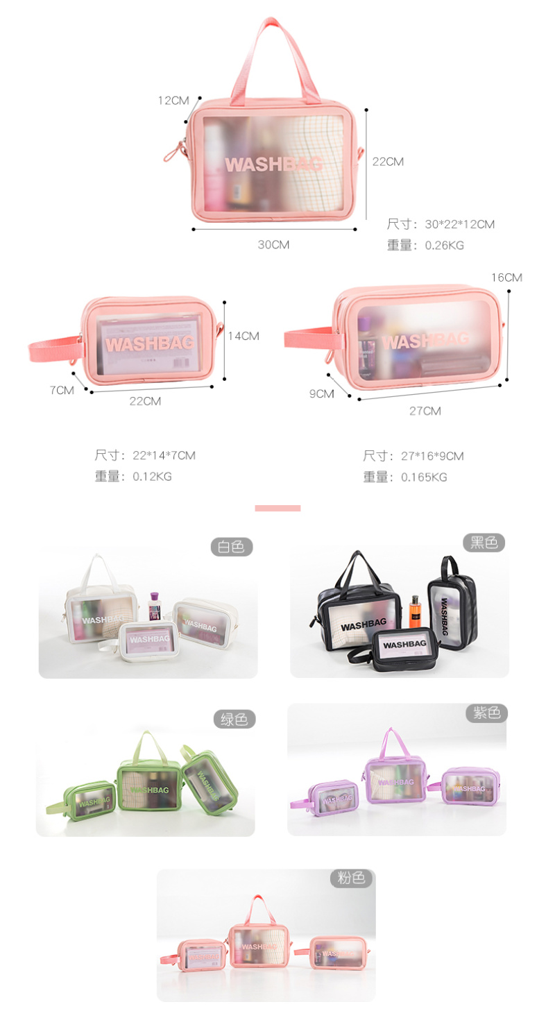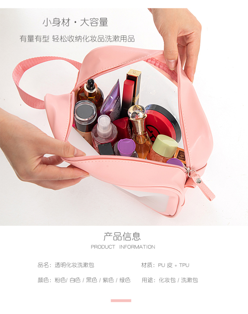 About Product:washbag cosmetic bag medium: the main fabric of this product is made of soft PU + TPU material, waterproof and hard-wearing easy to clean, large internal space, more convenient storage, nylon Portable Design, easy to carry. Colors: purple, green, black, pink, white. Factory Direct sales can be invoiced. Buyers from major companies are welcome to inquire and negotiate!!!!