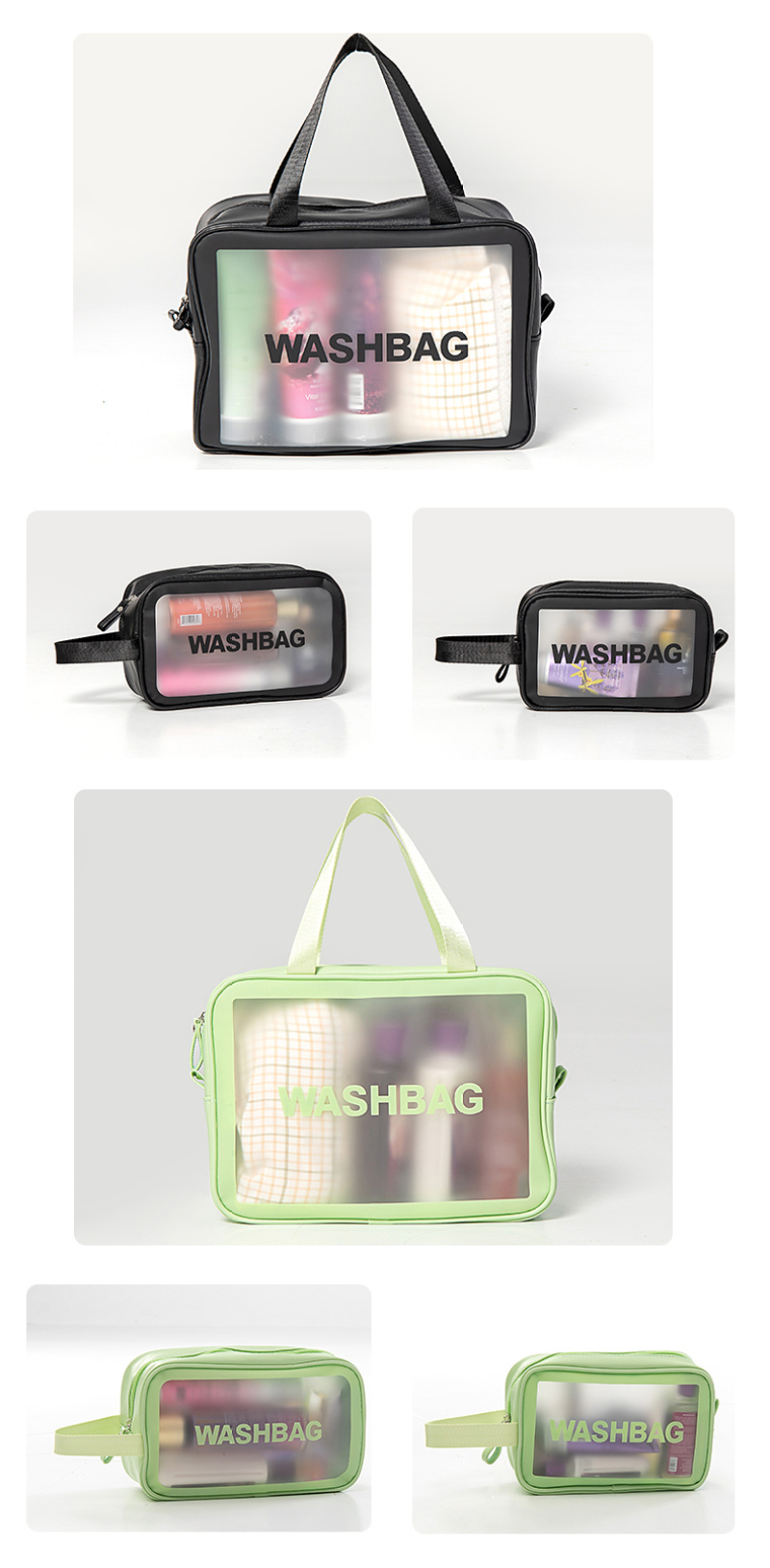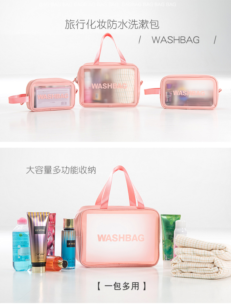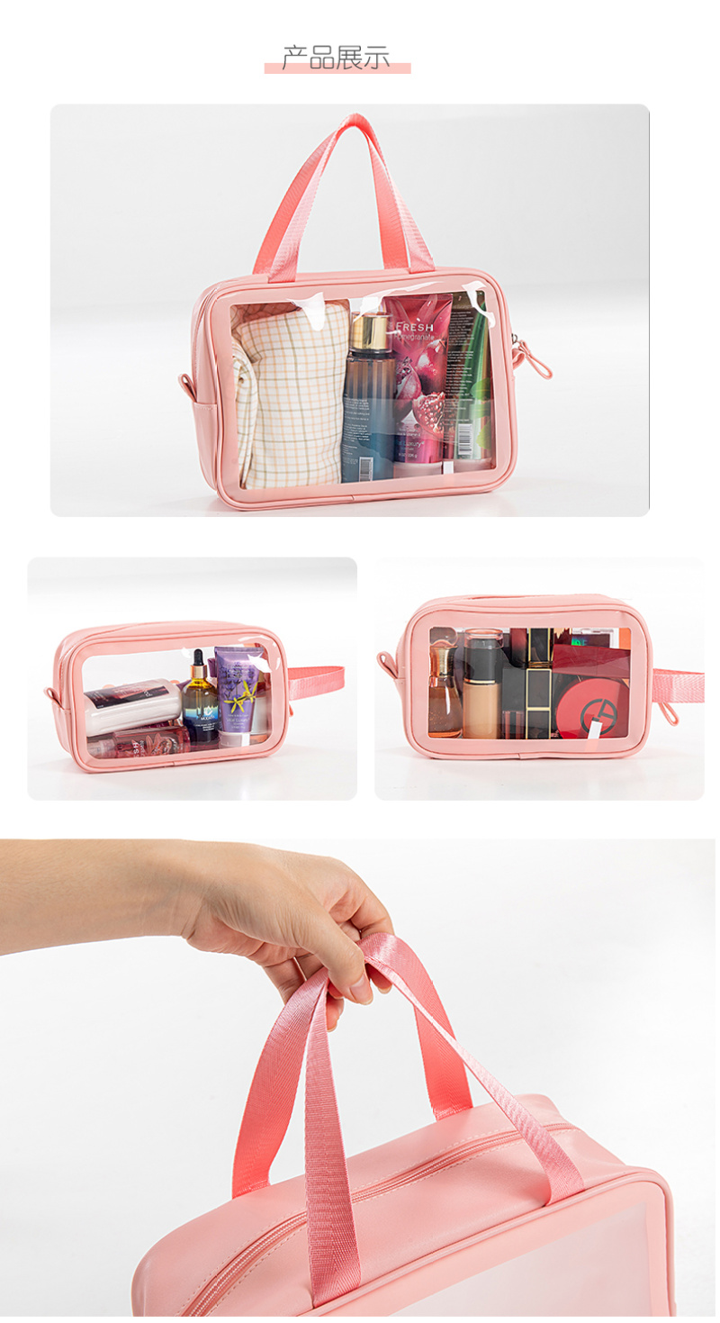 About Product:washbag cosmetic bag medium: the main fabric of this product is made of soft PU + TPU material, waterproof and hard-wearing easy to clean, large internal space, more convenient storage, nylon Portable Design, easy to carry. Colors: purple, green, black, pink, white. Factory Direct sales can be invoiced. Buyers from major companies are welcome to inquire and negotiate!!!!