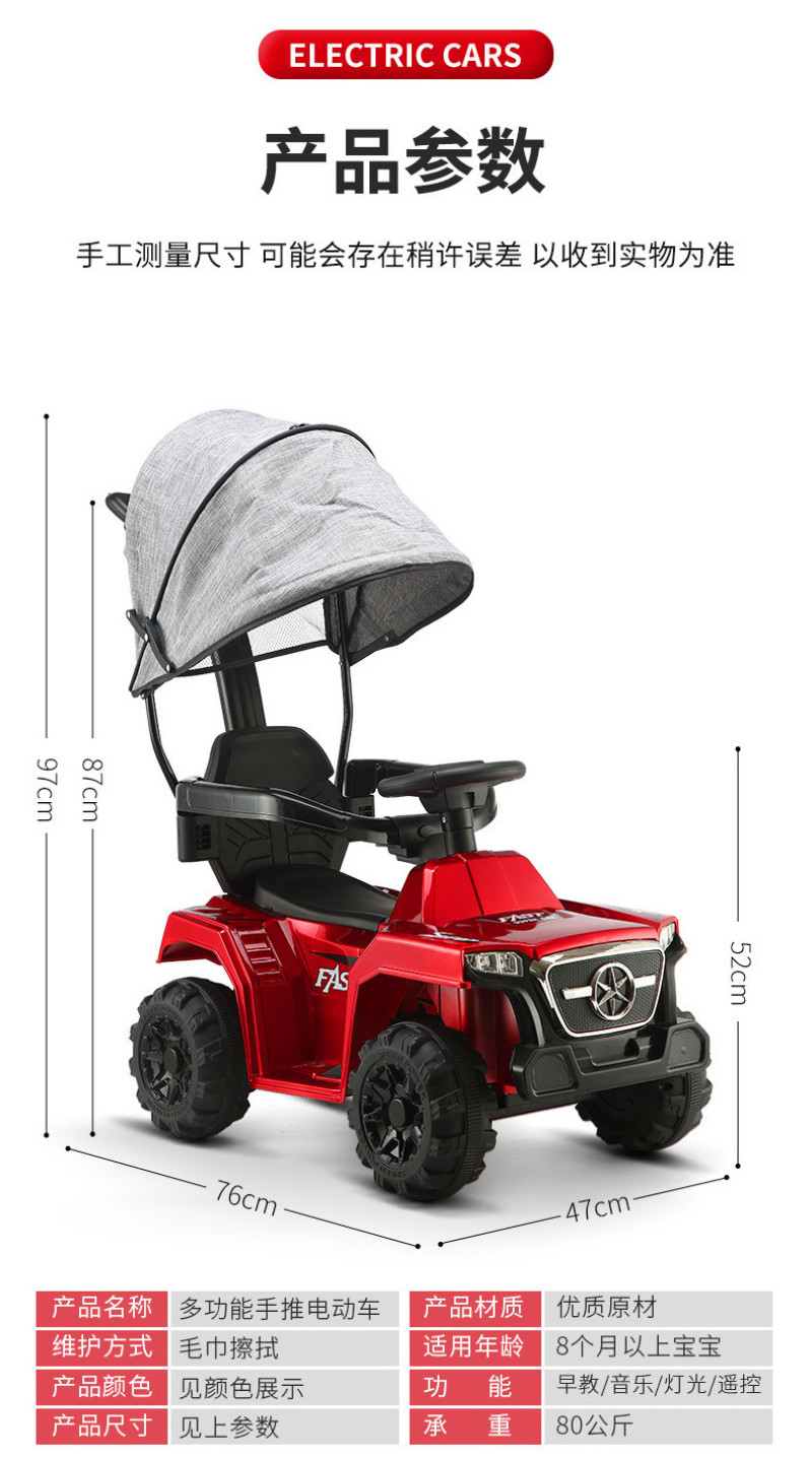 Bird King - Children's Electric Car. Color: Electric Sand Car with Round Handle, Iron Handle, please note the color in the order. Push rod electric car, please note the color in the order. Push rod electric car + remote control, please note the color in the order. Push rod with canopy and guardrails, please note the color in the order. Canopy with push rod and guardrails + remote control, please note the main color in the order.This product is primarily supplied to export companies and directly purchased by foreign businesses. Our factory is a production enterprise with the right to independently import and export. We can offer FOB Tianjin Port, accept US dollars, and provide OEM sample processing and branding services! The company's brand trademarks are: "Bird King" and "Oralma".