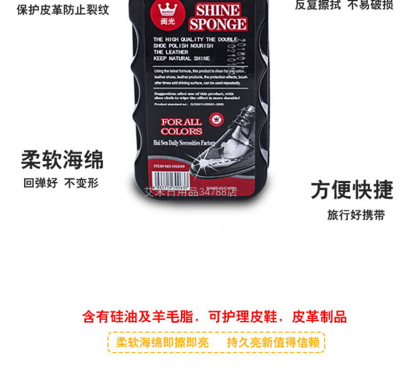 DQL-HS699 Single-Sided Rectangular Shoe Wax Leather Shoes Care and Maintenance Shoe Polish Double-Sided Sponge Wipe