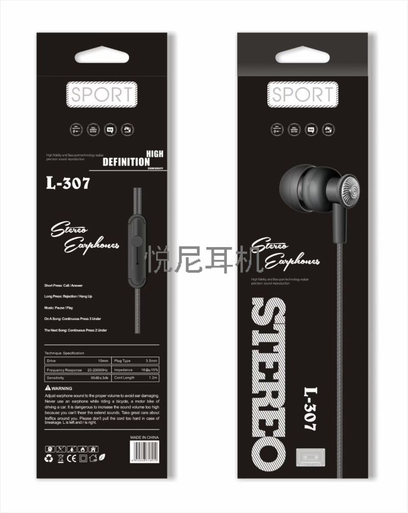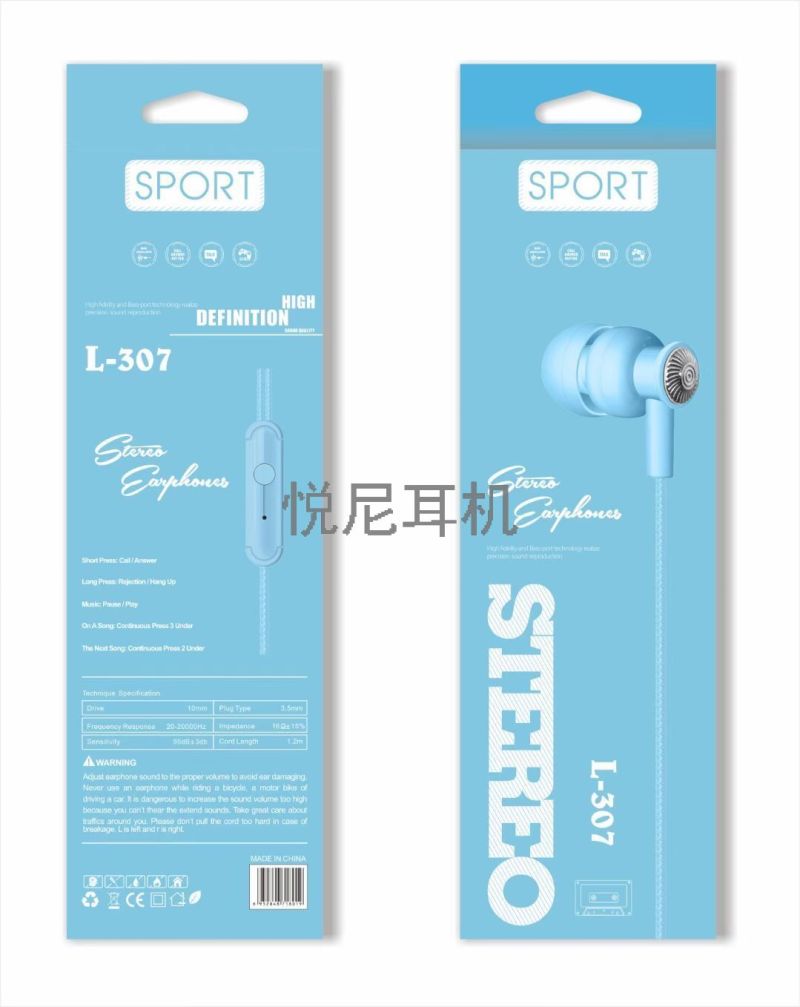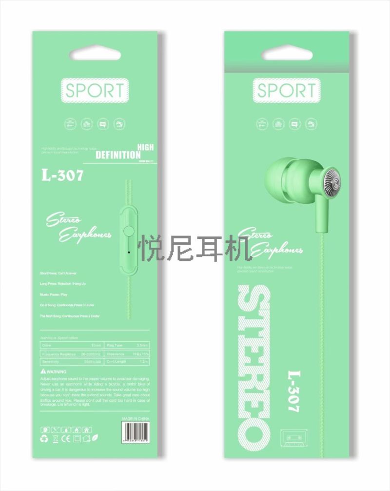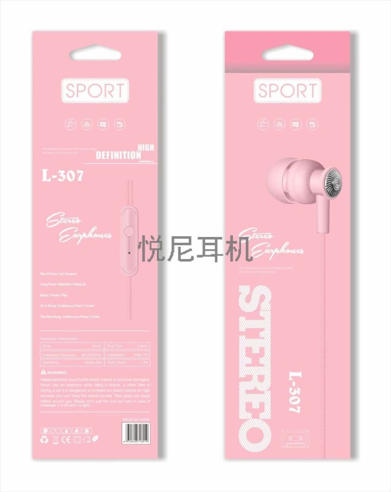 macaron color boxed in-ear earphones new with mic audio boxed in-ear phone earphones l-307