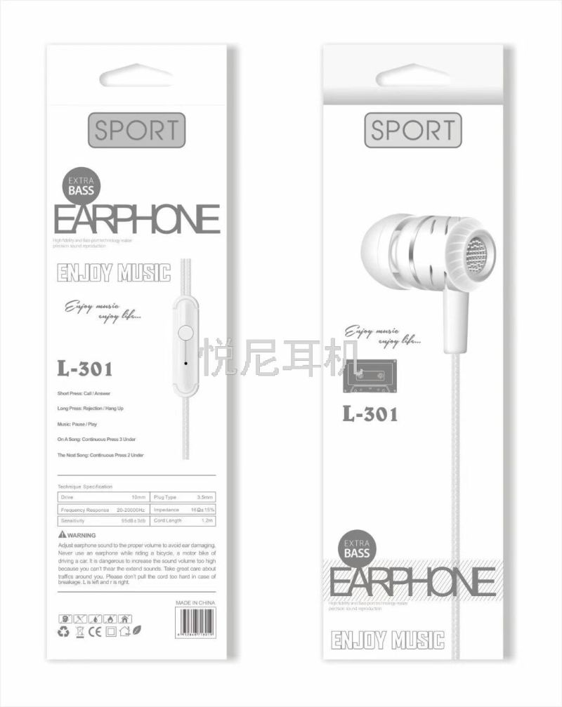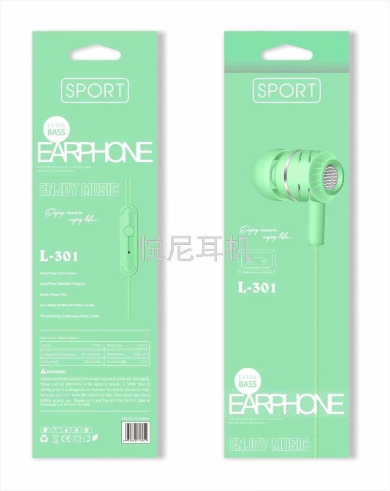 macaron color boxed in-ear earphones new with mic audio boxed in-ear phone earphones l-301