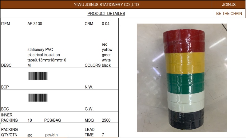 About Product:电工胶带绝缘胶带强力电胶布强力绝缘胶布stationery PVC electrical insulation tape0.13mmx18mmx10M AF-3130