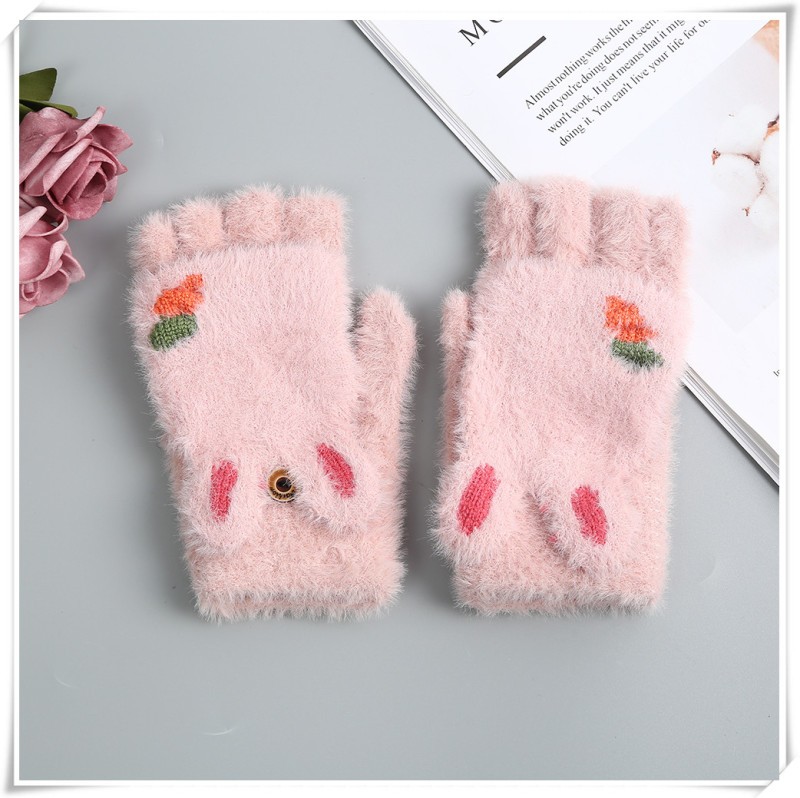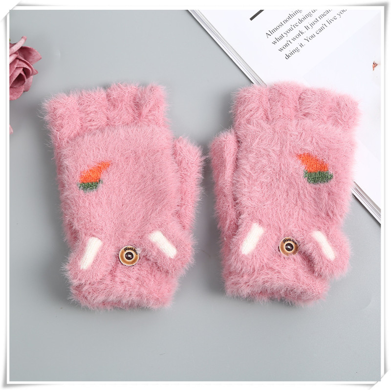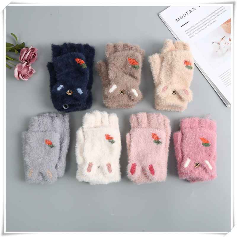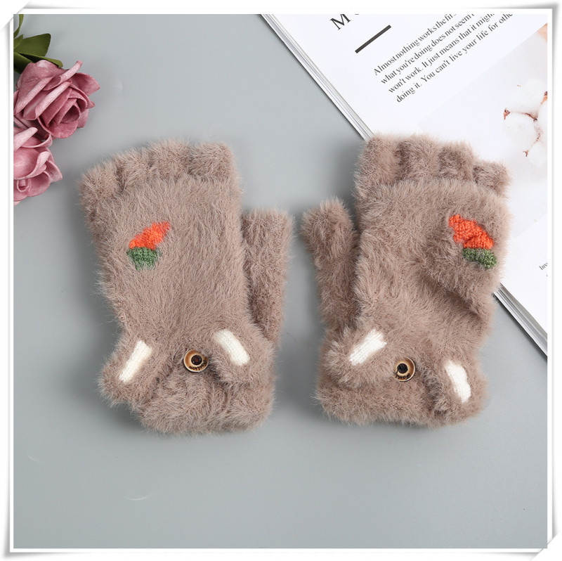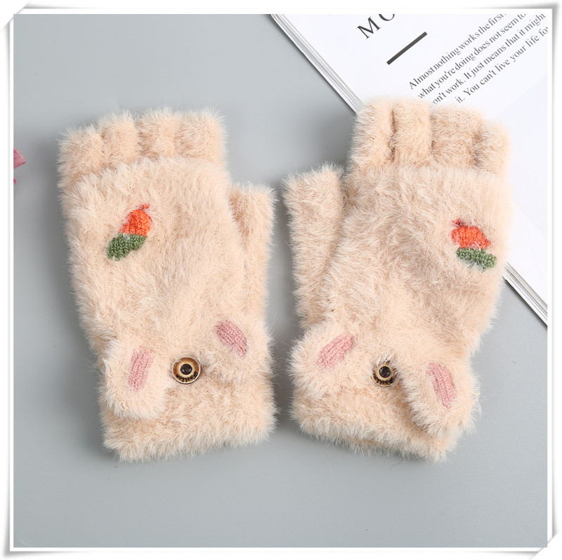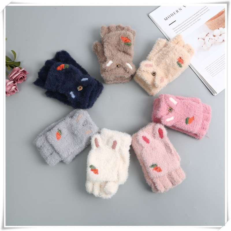 Product Name: Girls' Gloves 2020 Winter New Style Children's Cartoon Cute Rabbit Fashion Girl Baby Half-finger Foldover Gloves
