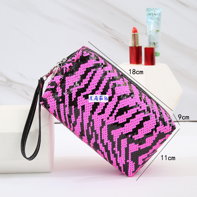 European American Style Women's Pillow Sequined Cosmetic Bag Printing Storage Bag Wash Bag Zipper Bag Factory Wholesale
