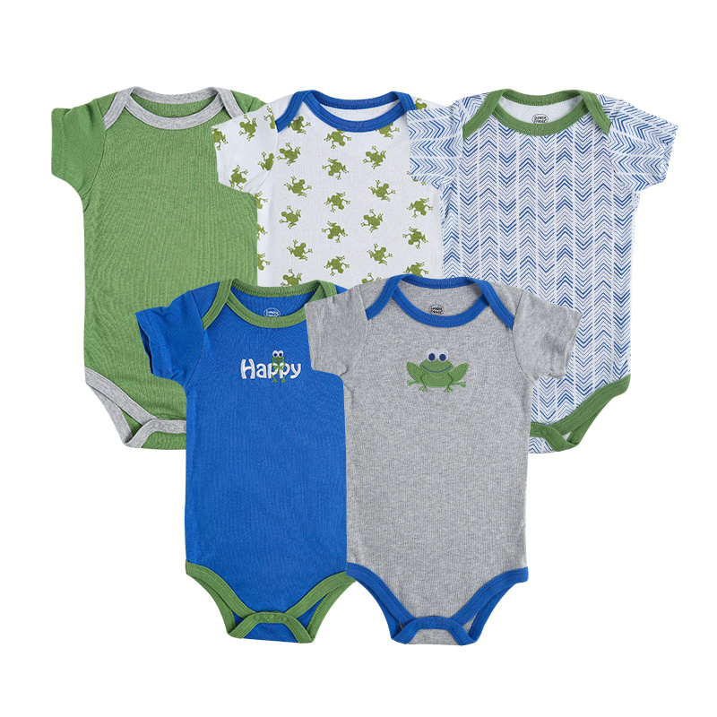 Newborn Baby One-Piece Clothes Summer New Five-Piece Cotton Triangle Rompers Baby's Romper European and American Cartoon