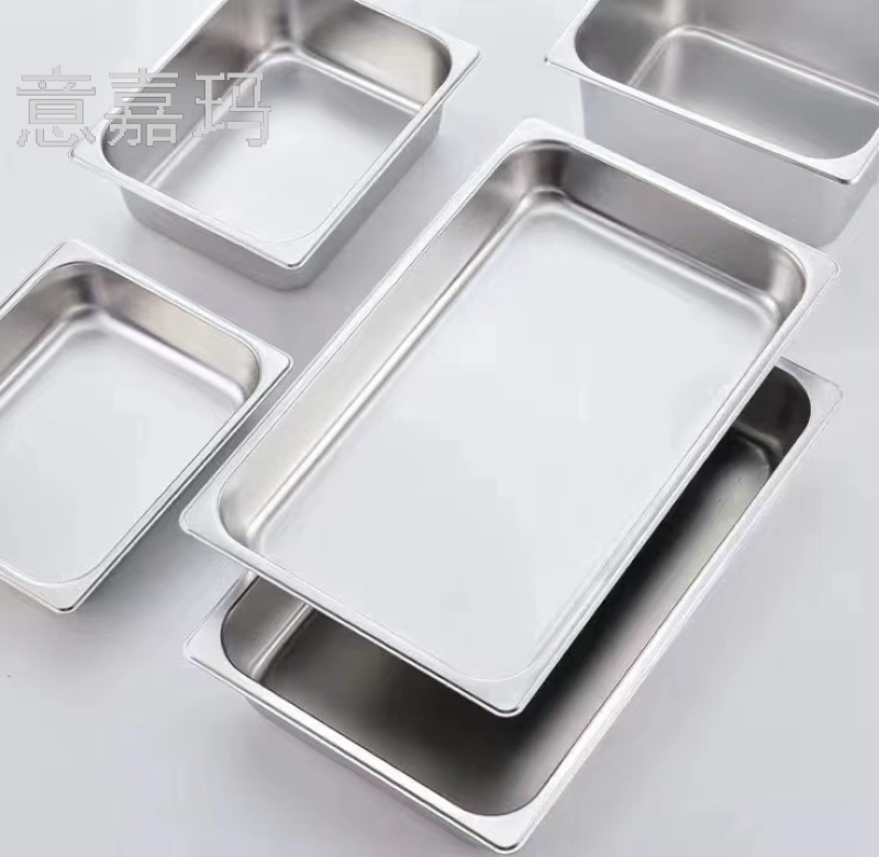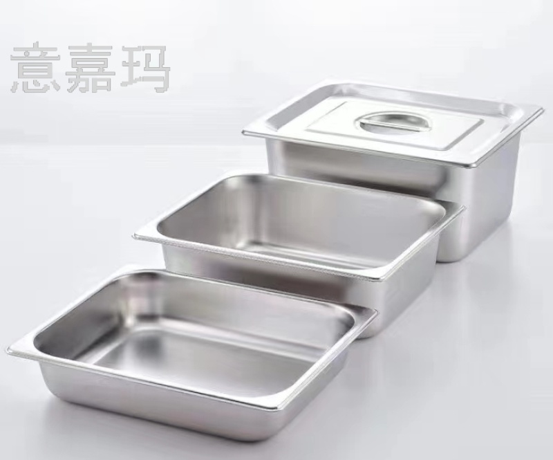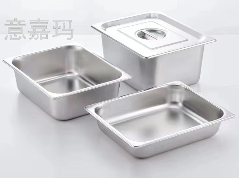 Stainless Steel Basin Rectangular Gastronorm Container with Lid Fractional Plate Meal Basin Milk Tea Shop Jam Box