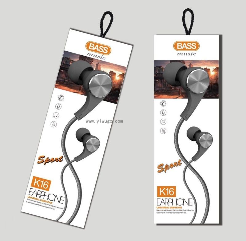 factory direct sales new universal line control with microphone boxed in-ear headset call mobile phone headset k16