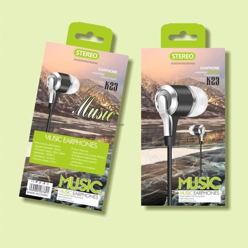factory direct sales new universal line control with microphone boxed in-ear headset call mobile phone headset k23