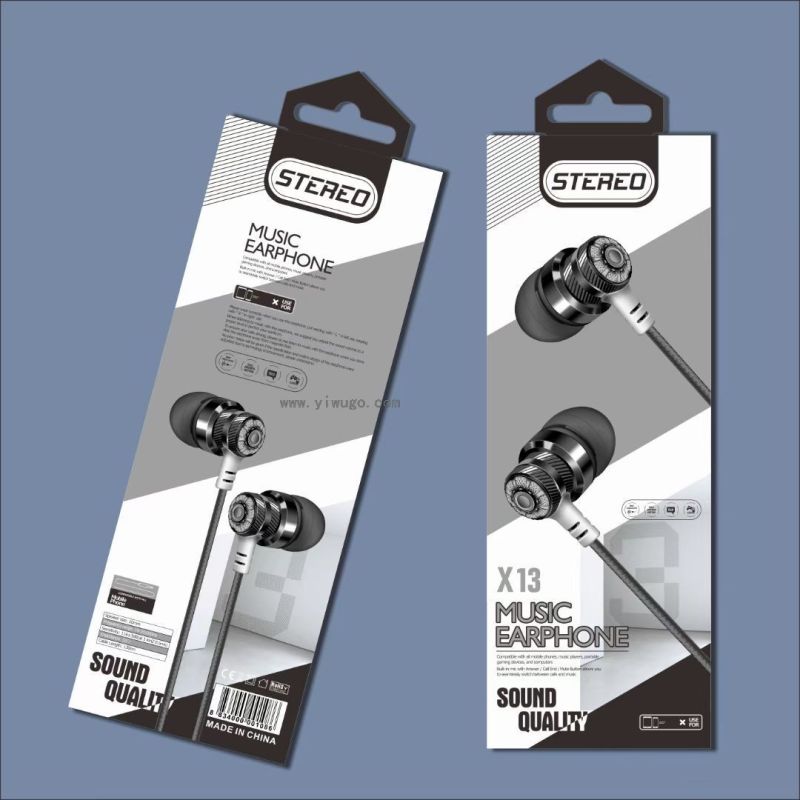 factory direct sales new universal line control with microphone boxed in-ear headset call mobile phone headset x13