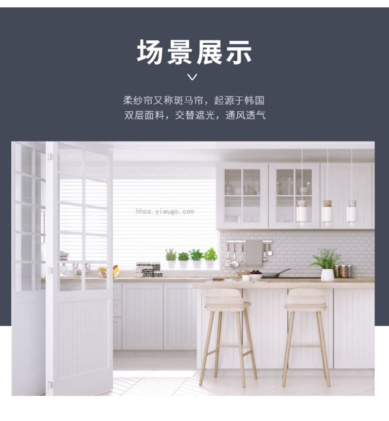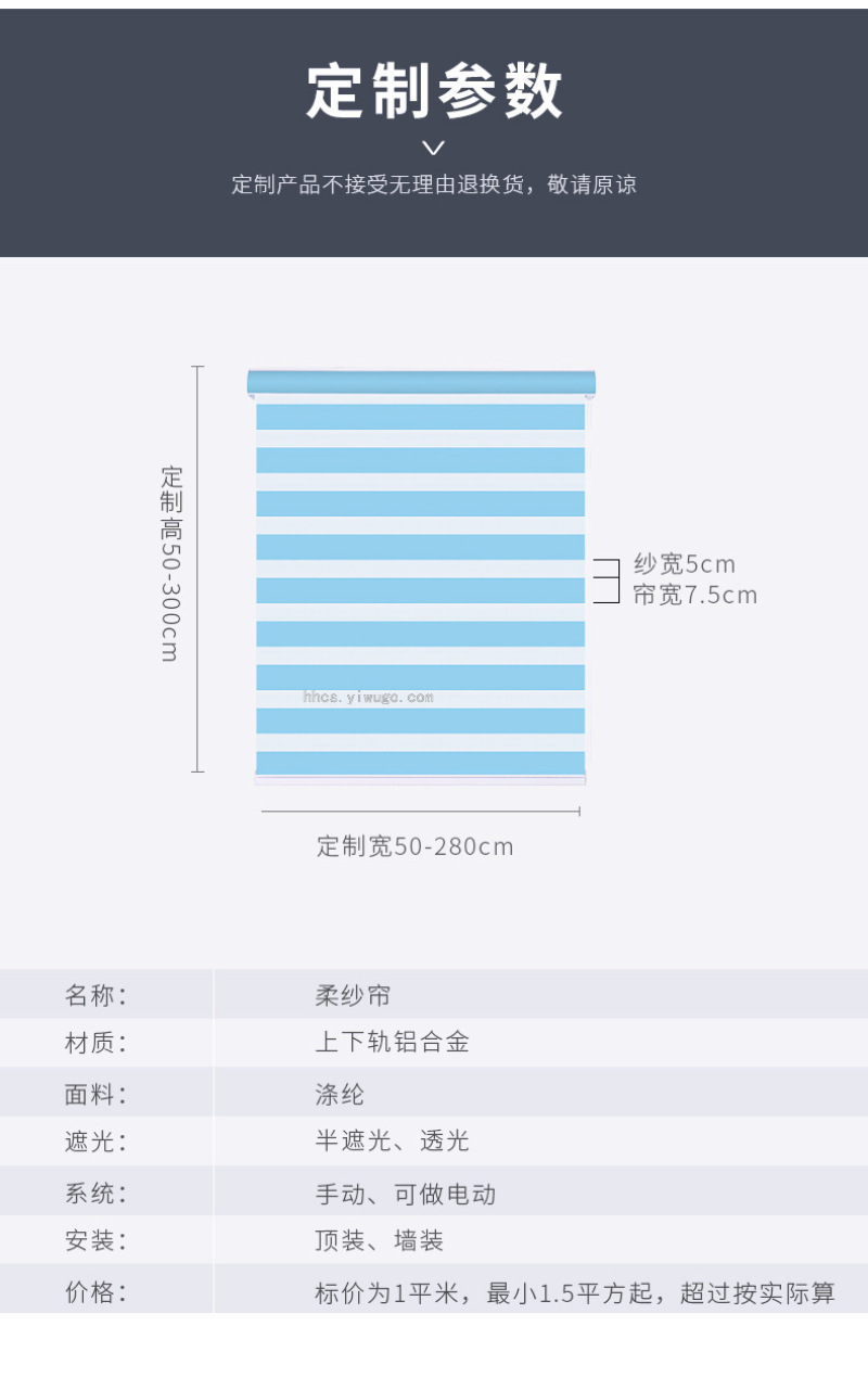 Size: Custom (Width: Fabric + Both Sides Accessories) Height: Including the Overall Height of the Upper and Lower Tracks