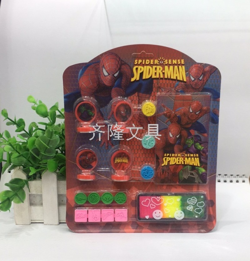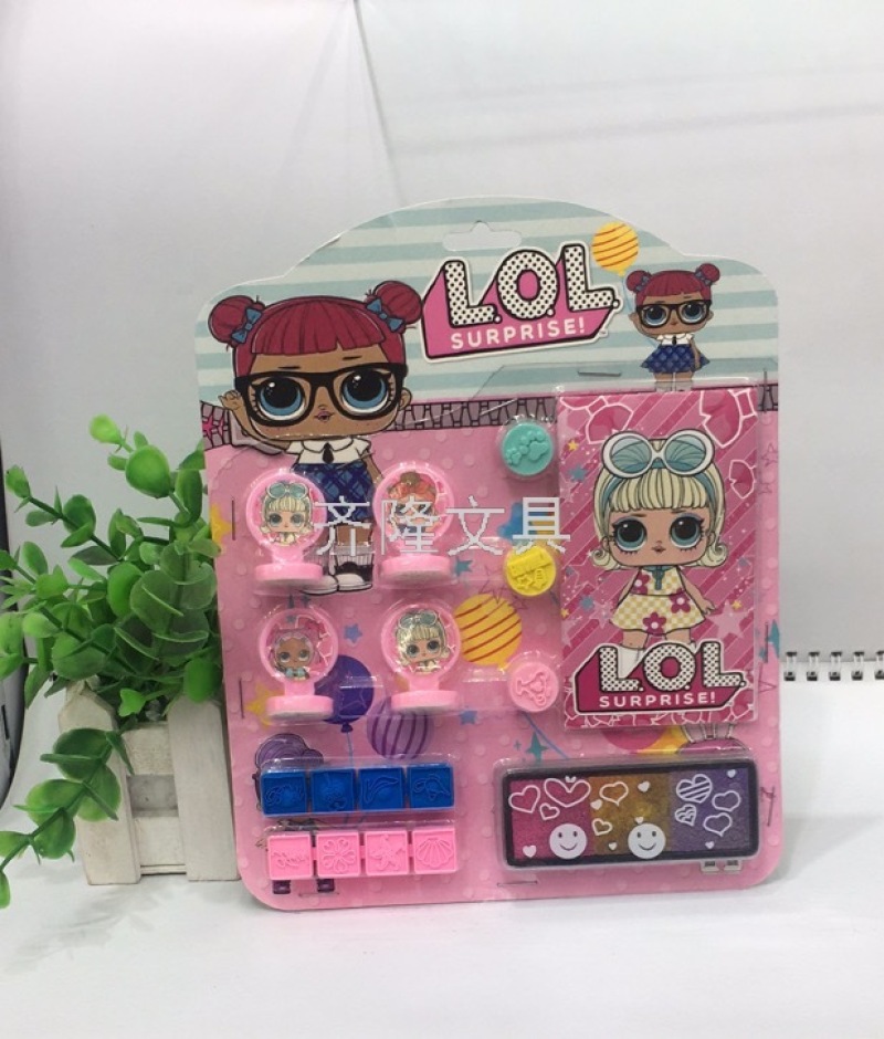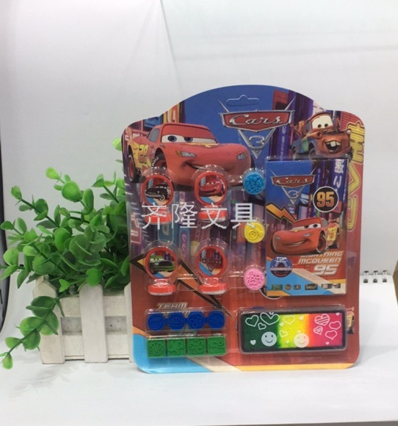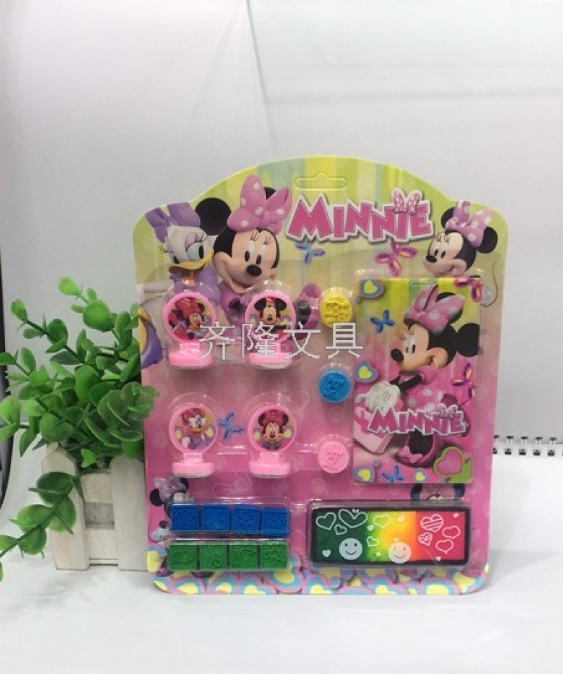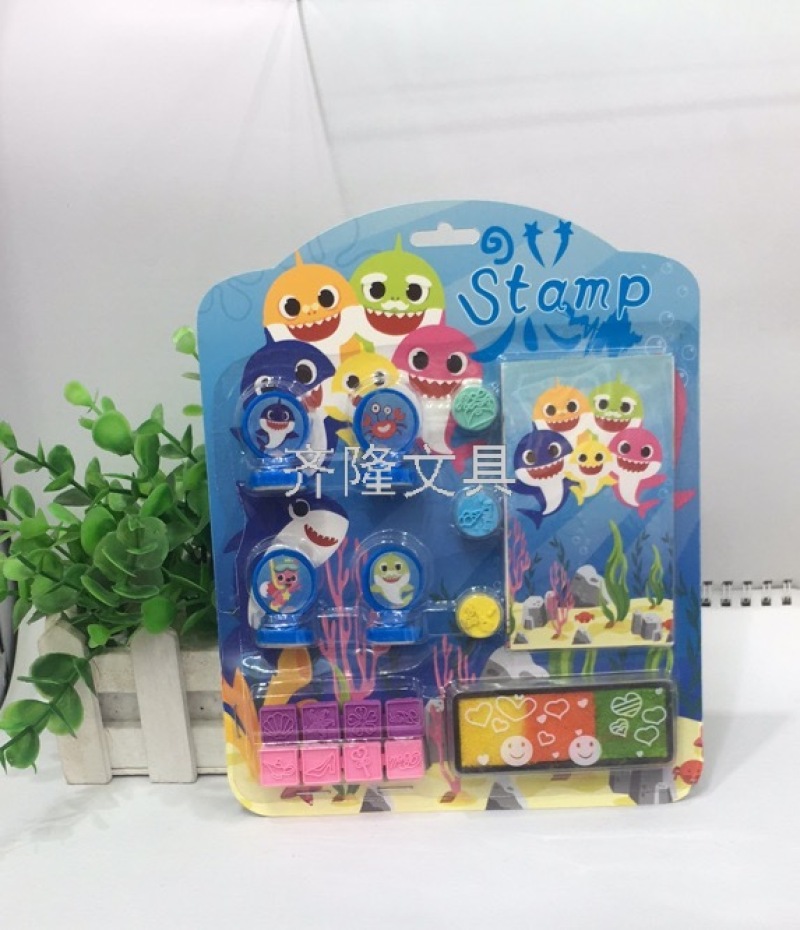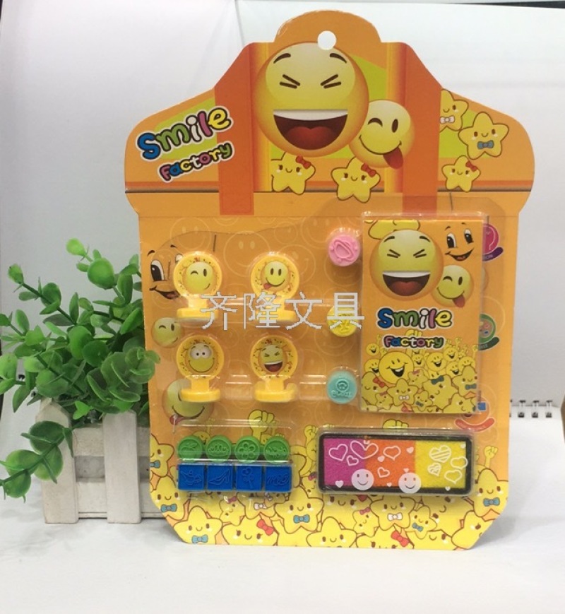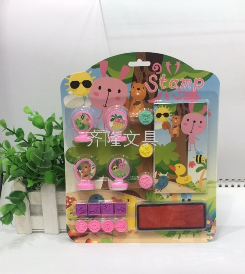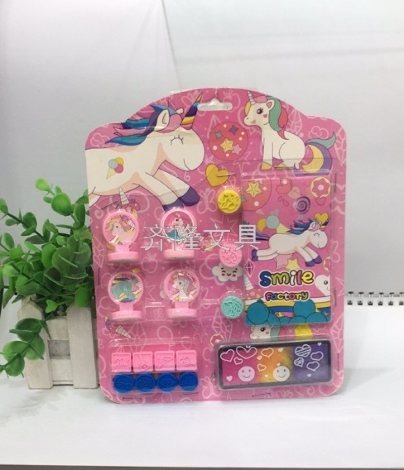 产品描述:四个不同图案的印章,三个圆形小橡皮印章,两块连体橡皮印章,一个墨盒+印泥,一个小本子