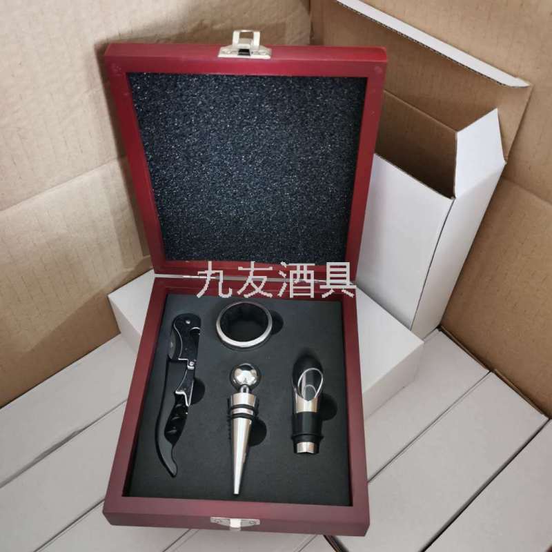 Wine Bottle Opener Kit Wooden Box 4-Piece Red Wine Gift Set