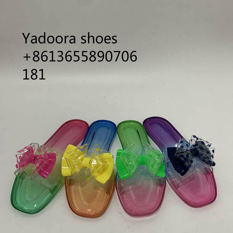 summer crystal gradient color bow slippers