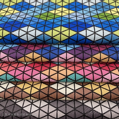 yiwu leather factory direct sales pearl pattern, water cube pattern, basketball pattern printing spunlace bottom pvc artificial leather