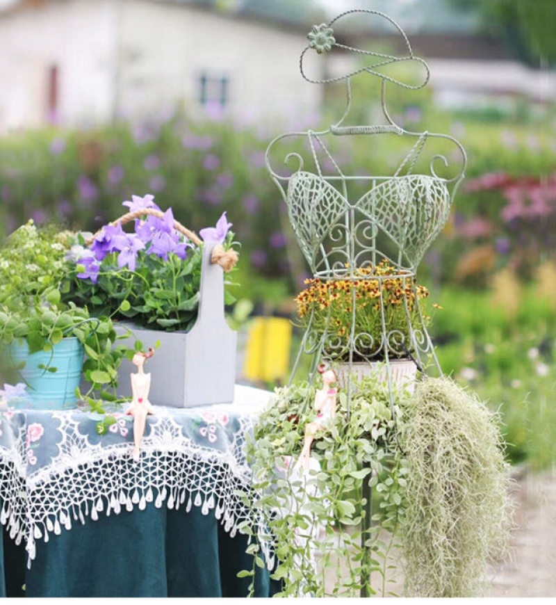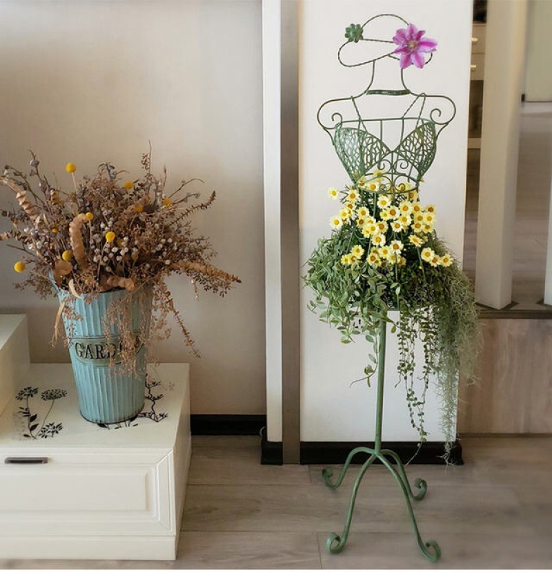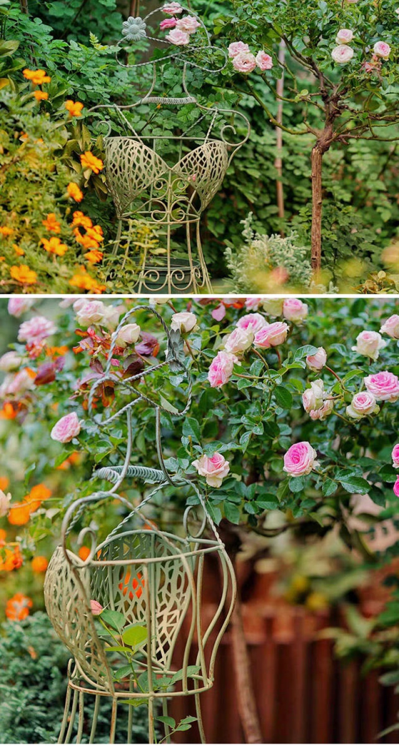garden vintage distressed iron mannequin flower rack clematis lattice climbing frame garden decorative frame storage rack