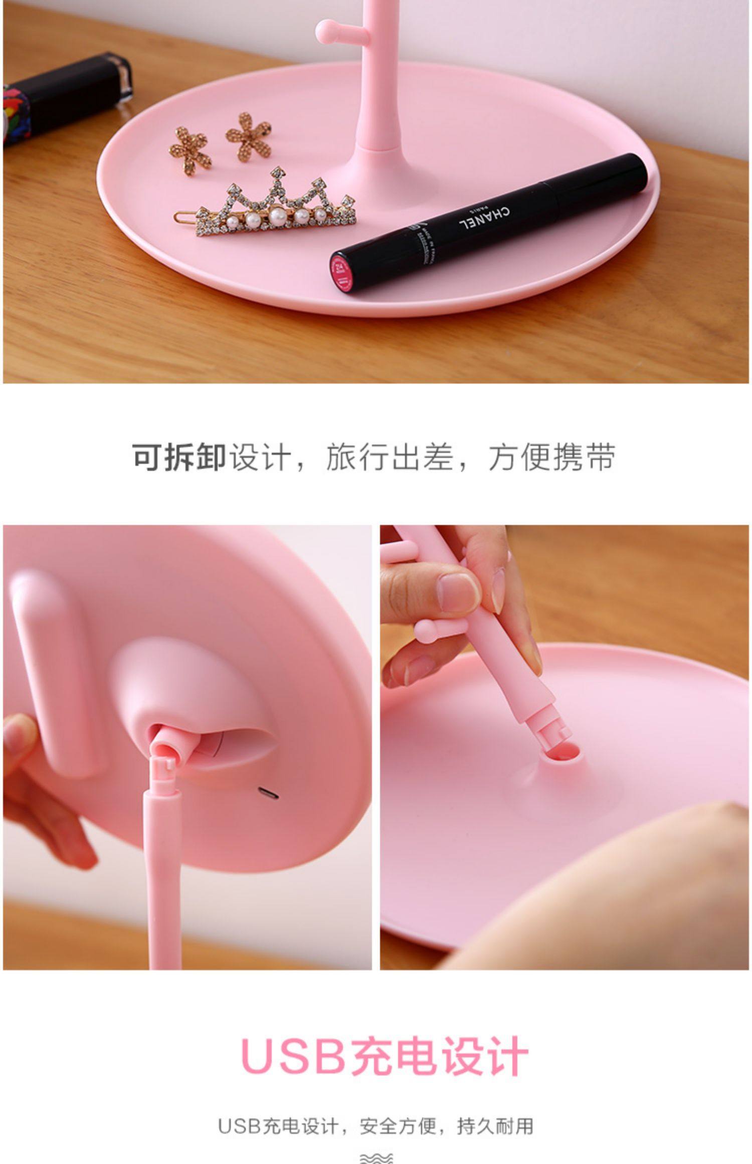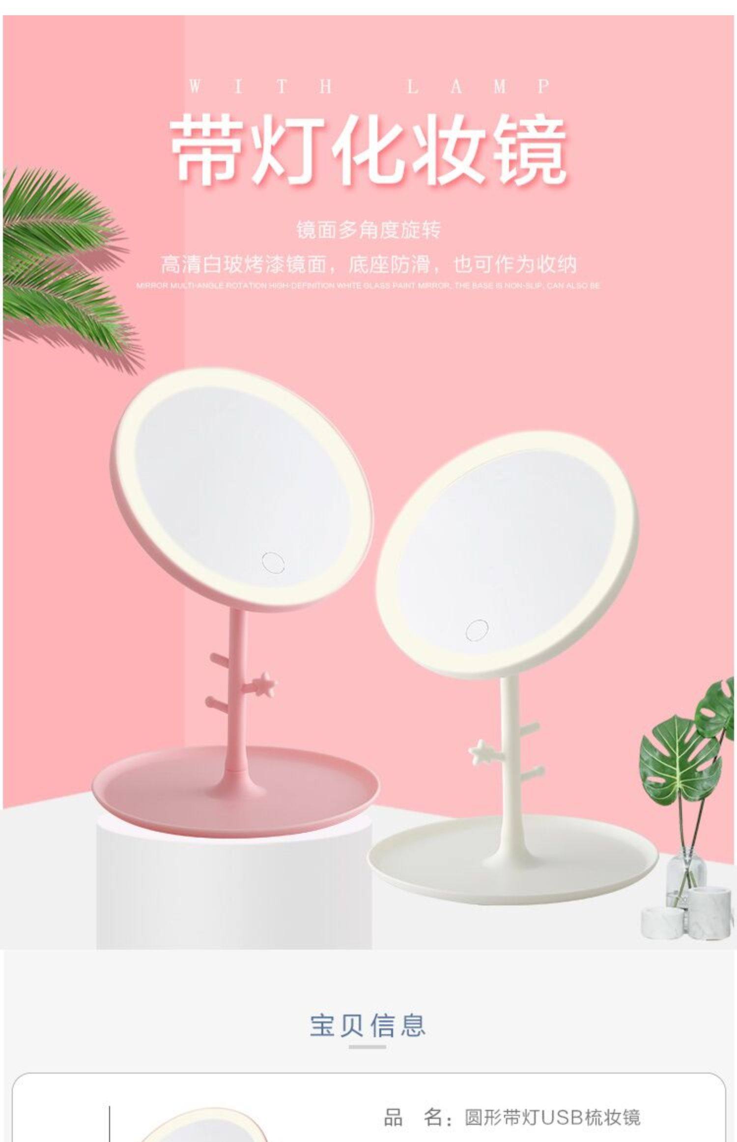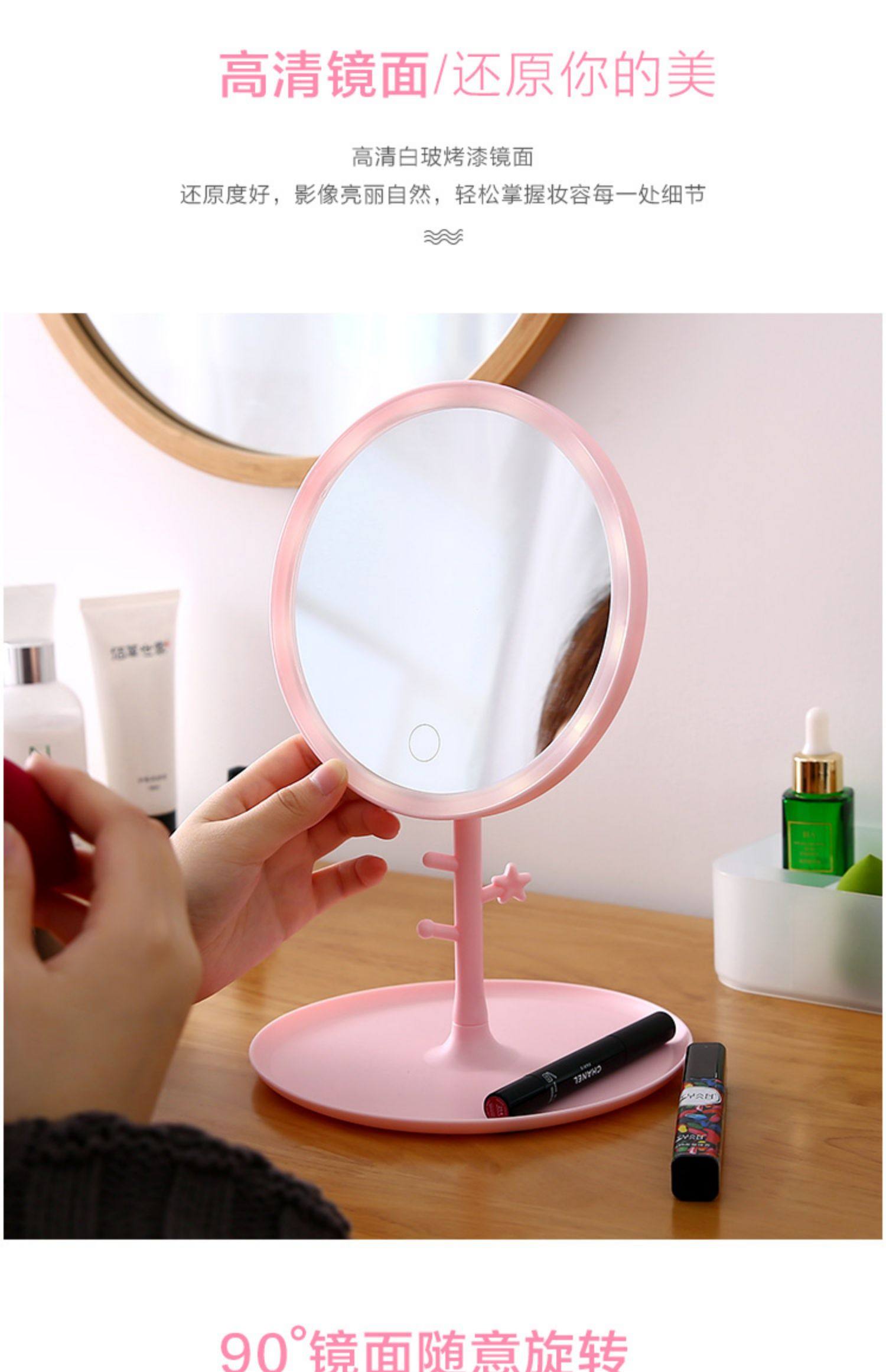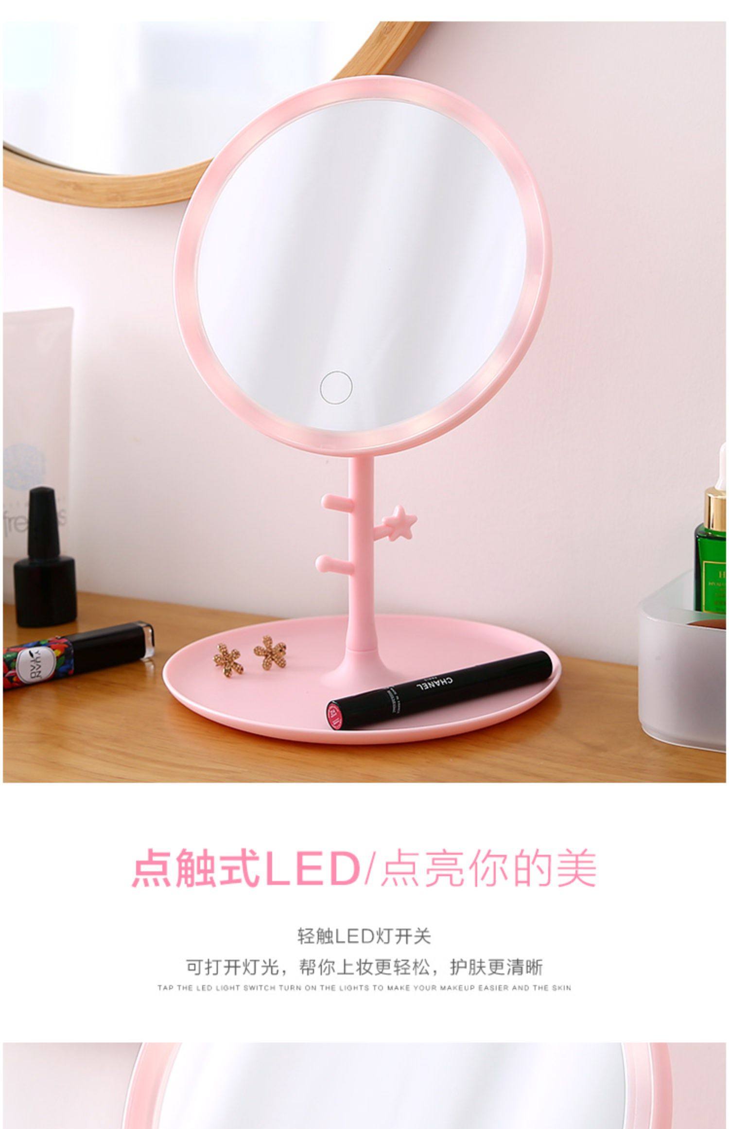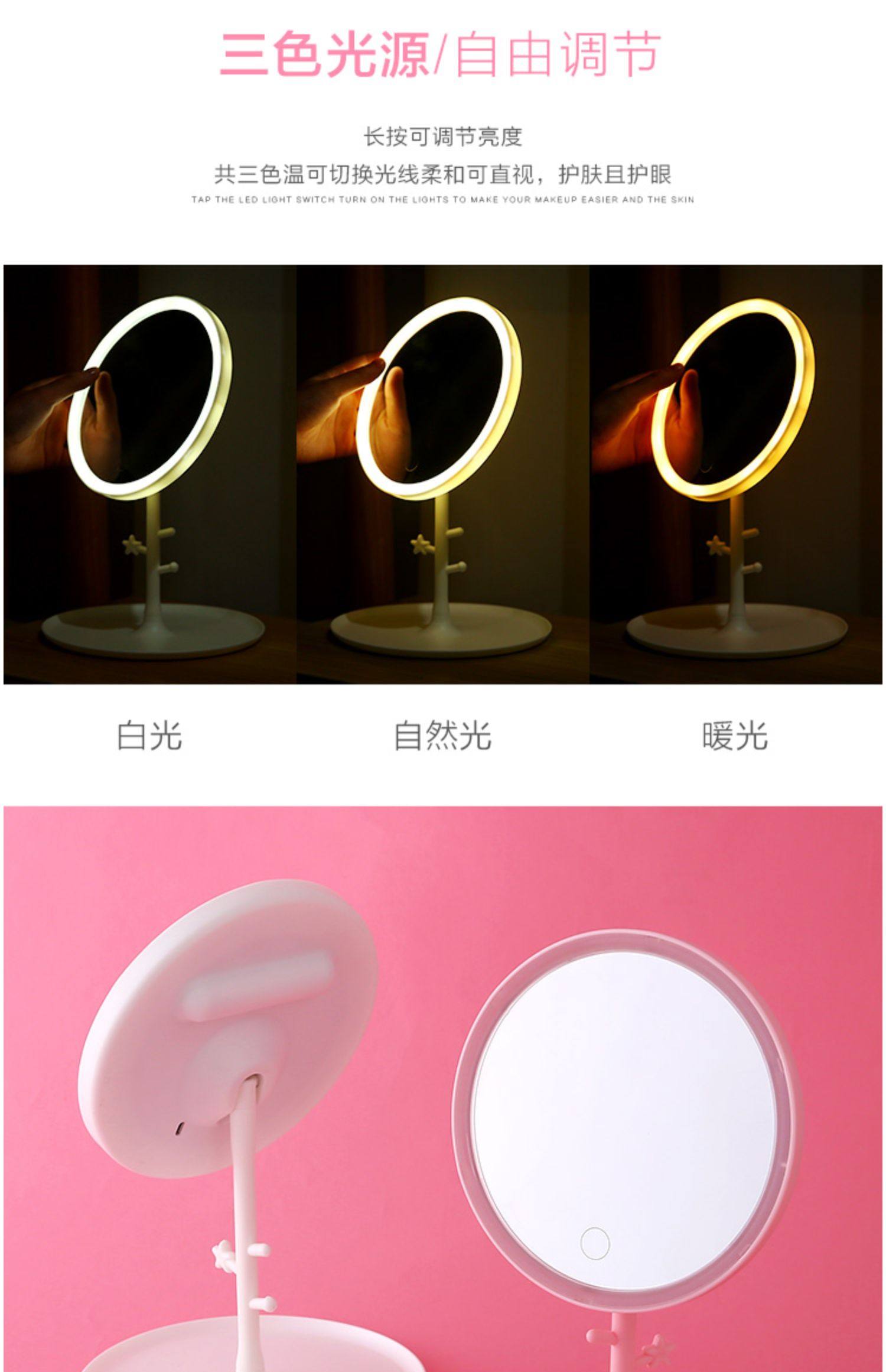 Led Makeup Mirror with Light Folding Dormitory Desktop Beauty Mirror Desktop Portable Portable Makeup Mirror..
