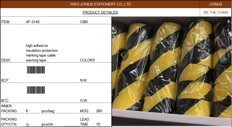 About Product:警示胶带4.8X18Mhigh adhesive insulation protection marking tape cable warning tape AF-3145