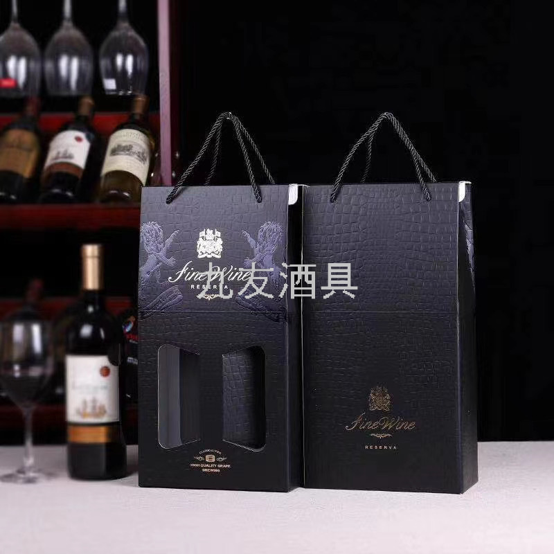 Extra Large Red Wine Double Bottled Paper Bag Black High Quality Large Belly Bottle Wine Handbag