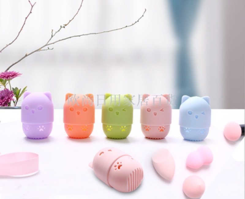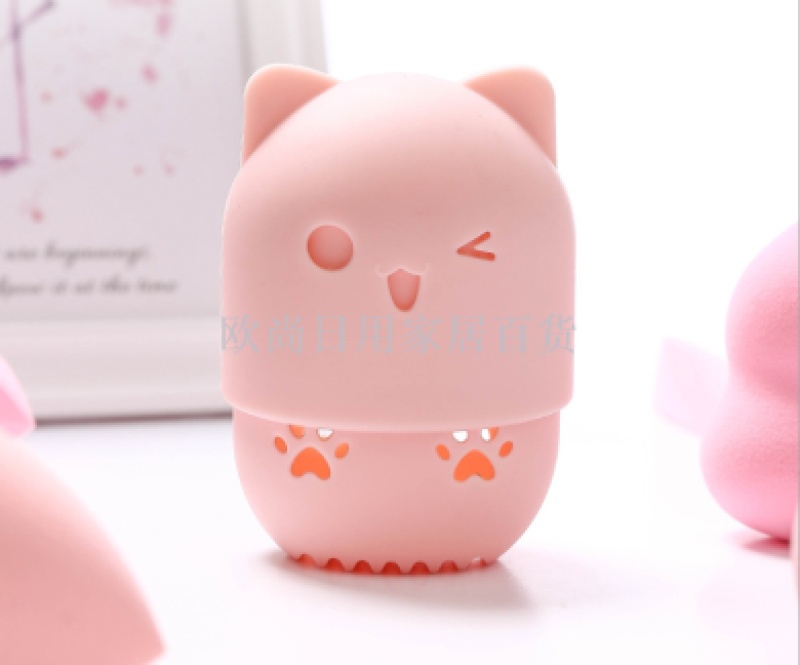 Portable Cosmetic Egg Silicone Protective Cover Travel Meow Powder Puff Dustproof Egg Shell Storage Box