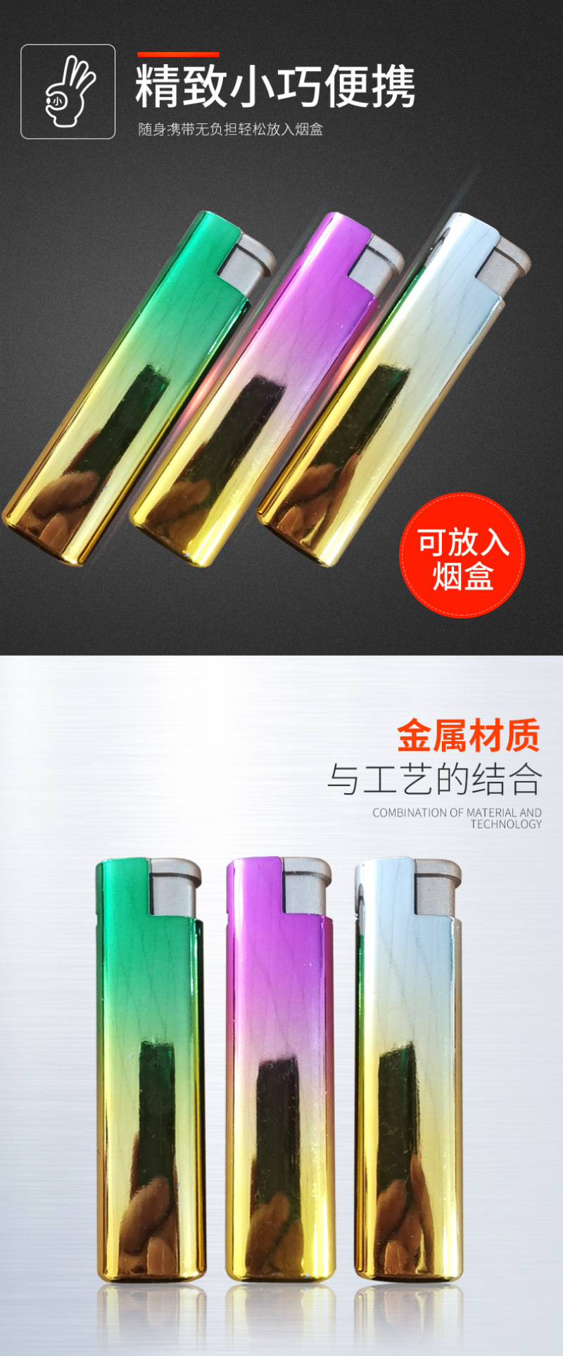 About Product:Thickened explosion-proof metal wind-resist tool gradient metal lighter lighter advertising customization