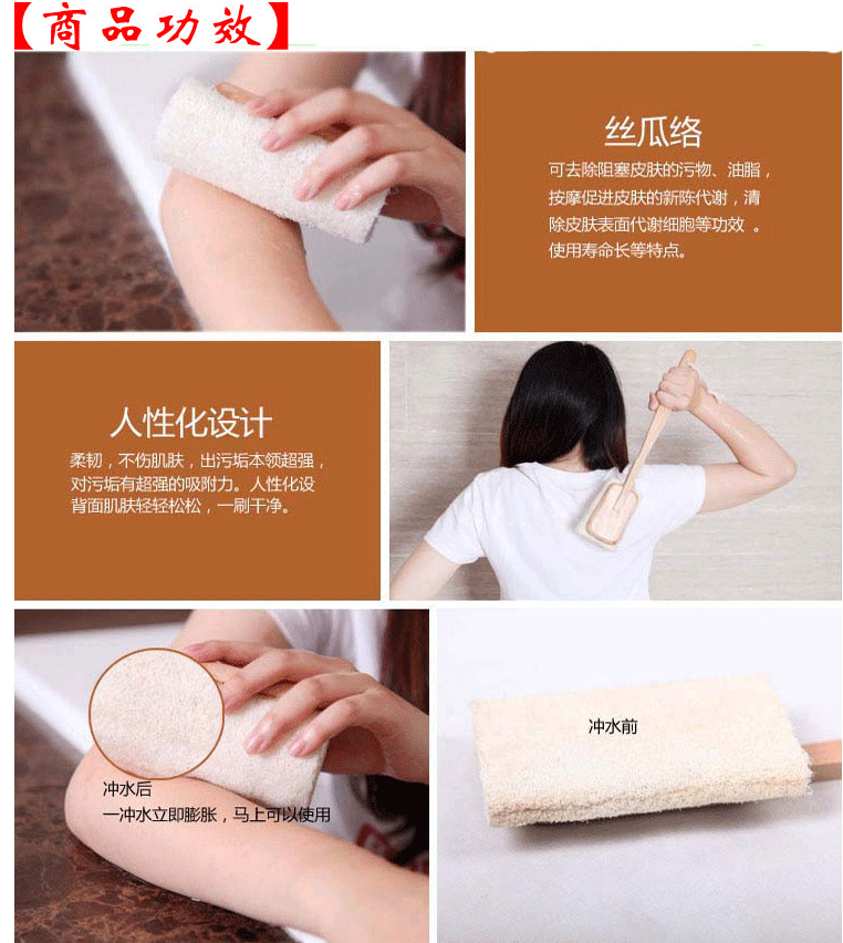[Note] Luffa is taken out after being cut open and compressed. After the product is launched, it will become fat after being restored luffa, and some will bend. These are normal conditions. Be sure to wash it after use and put it in a ventilated place to dry, otherwise, luffa collaterals may become black or mildew.