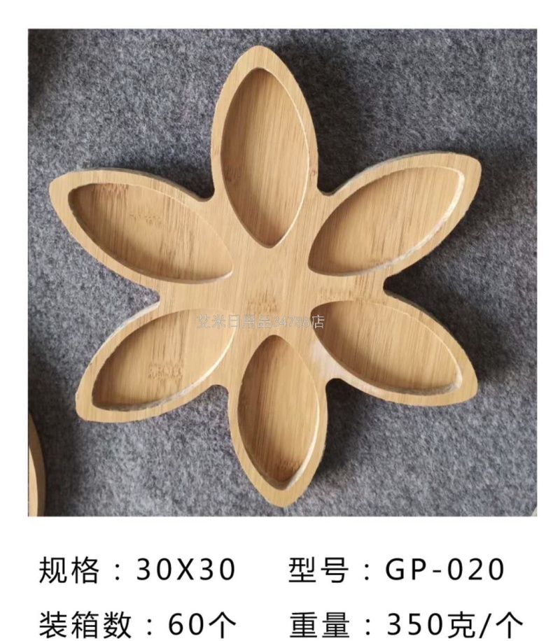 GP-002 Bamboo Plate Compartment Buffet Plate Household Children's Breakfast Plate Seasoning Tableware Candy Platter