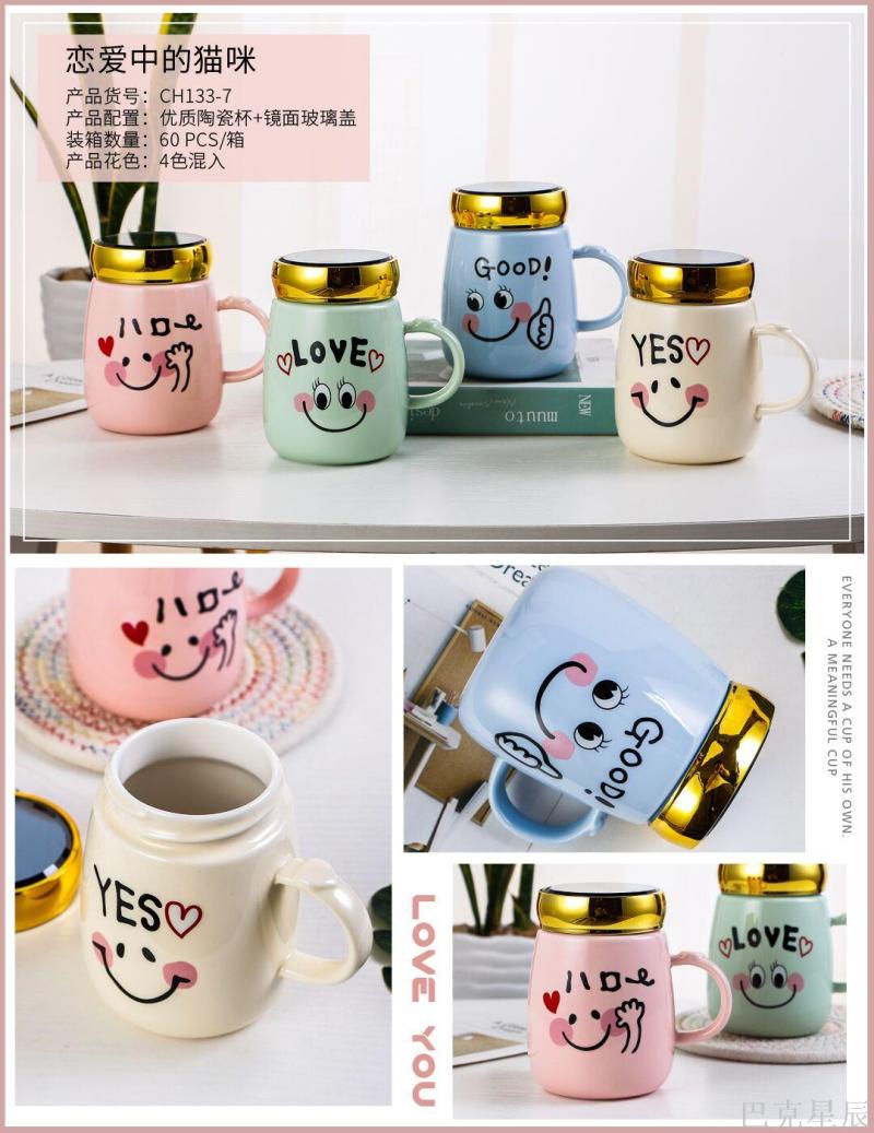 Yiwu New Ceramic Cup Wholesale Custom High-End Creative Mug with Lid and Spoon
