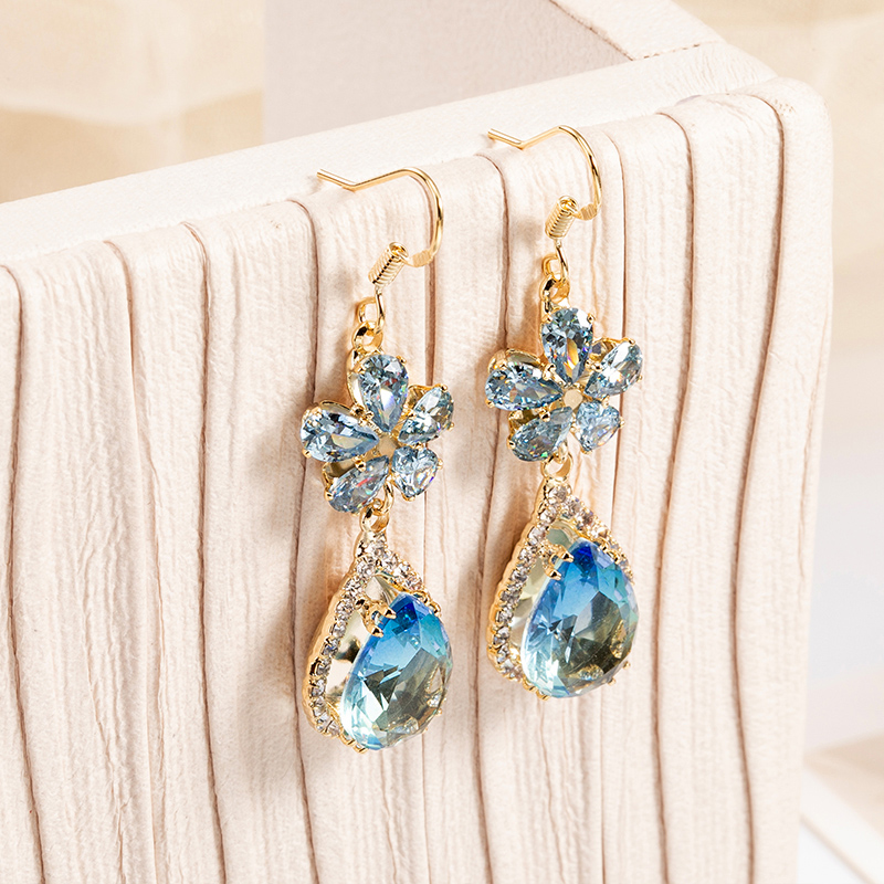 d3030 water drop flower earrings lake blue