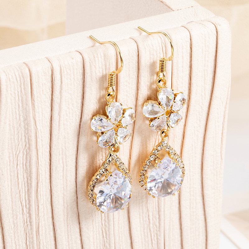 d3031 water drop flower earrings gold white