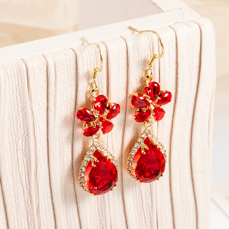 d3032 water drop flower earrings red
