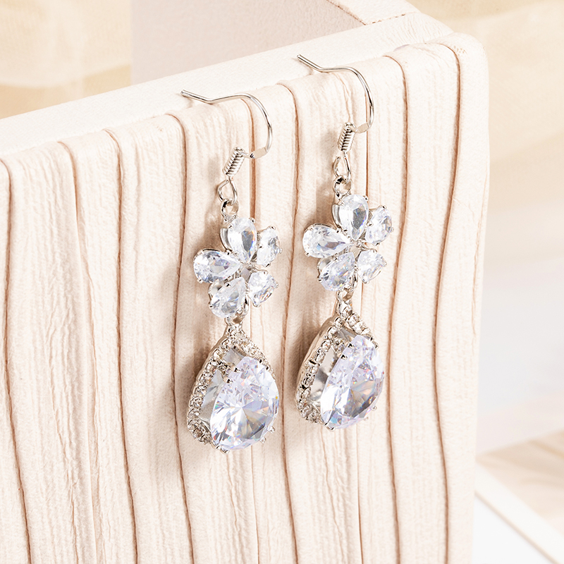 d3033 water drop flower earrings silver white