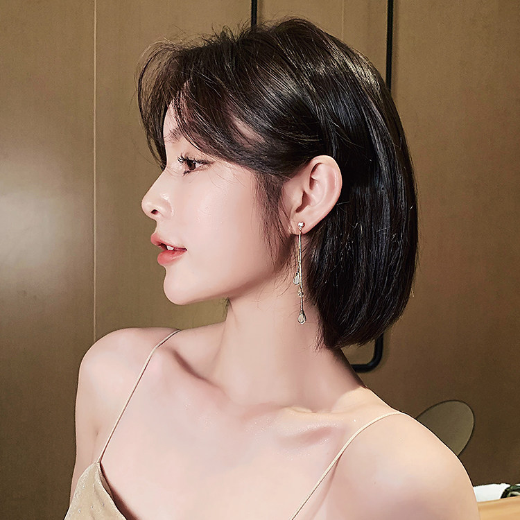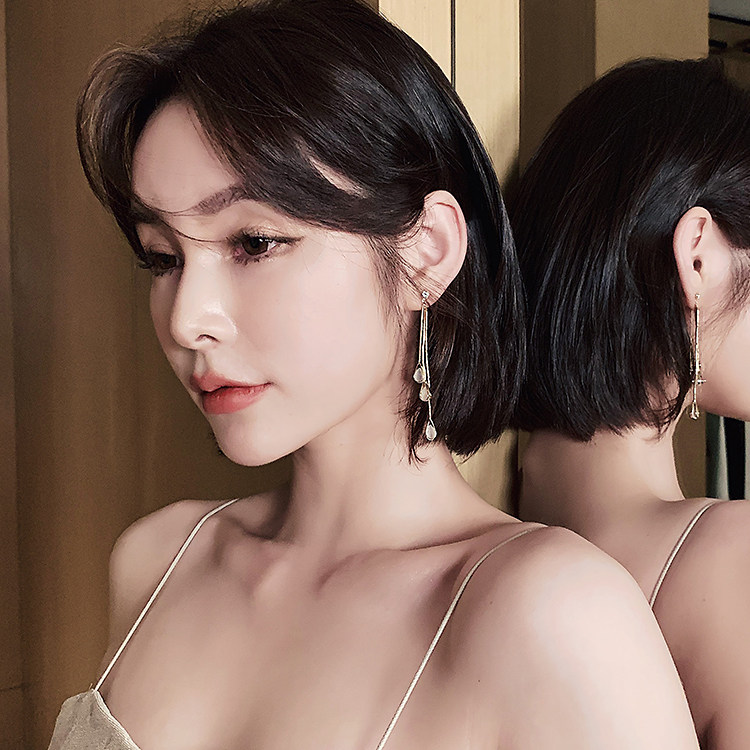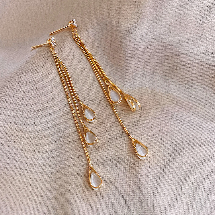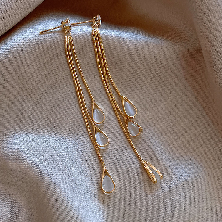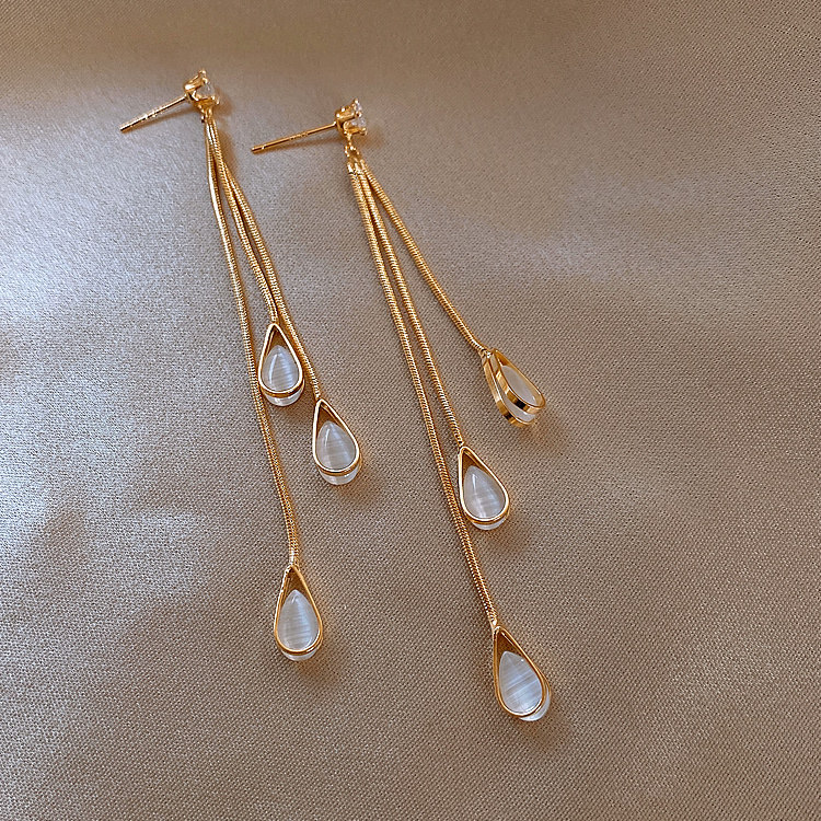 S925 Silver Needle Korean Cat's Eye Drop Tassel Earrings 2020 New Elegant Long Stud Earrings for Women Wholesale Customized