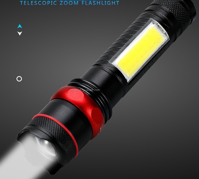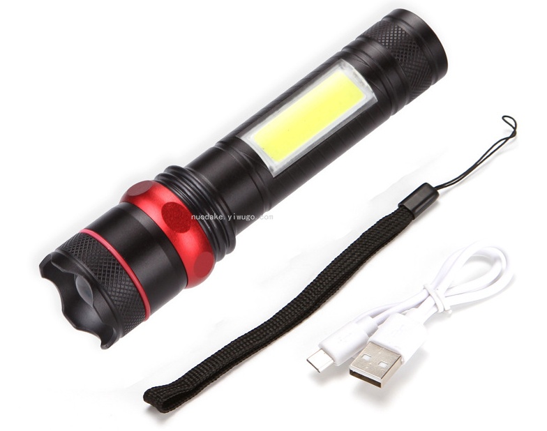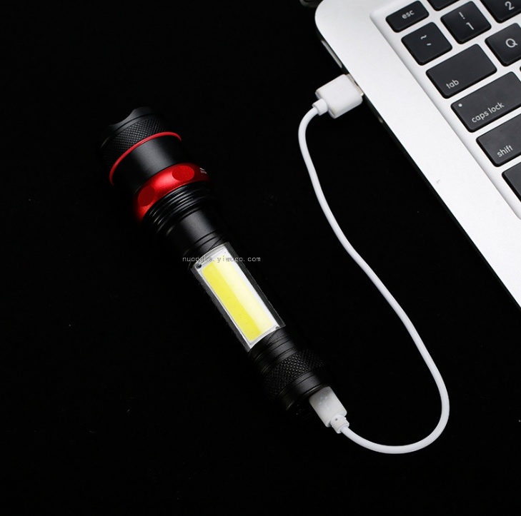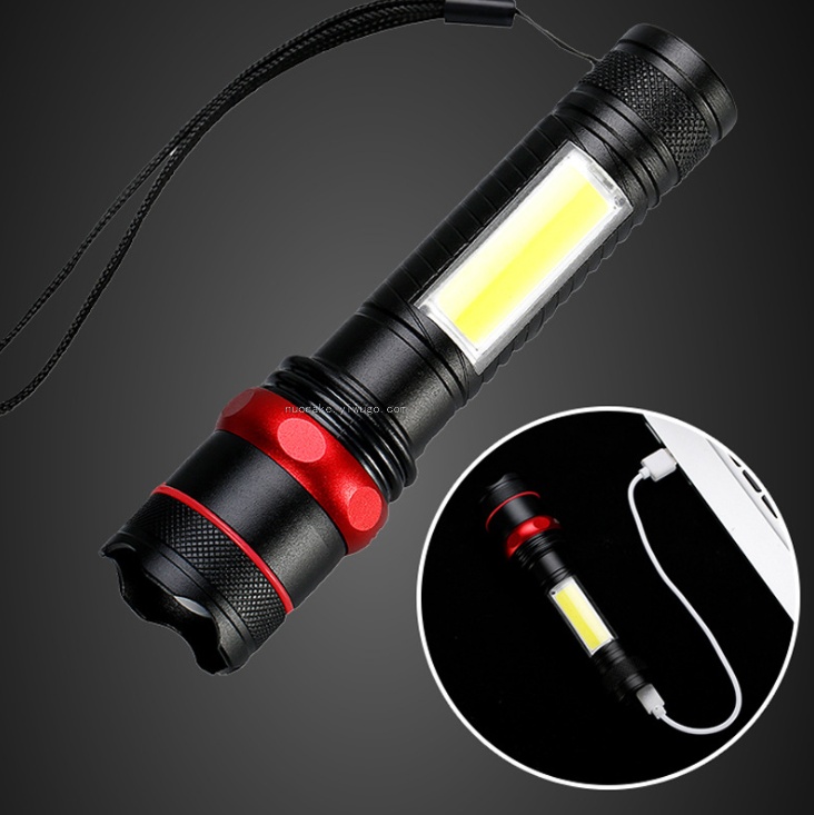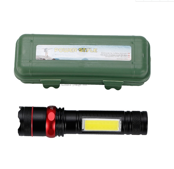 usb rechargeable aluminum alloy strong light flashlight with cob side light with power bank function adjustable focus flashlight