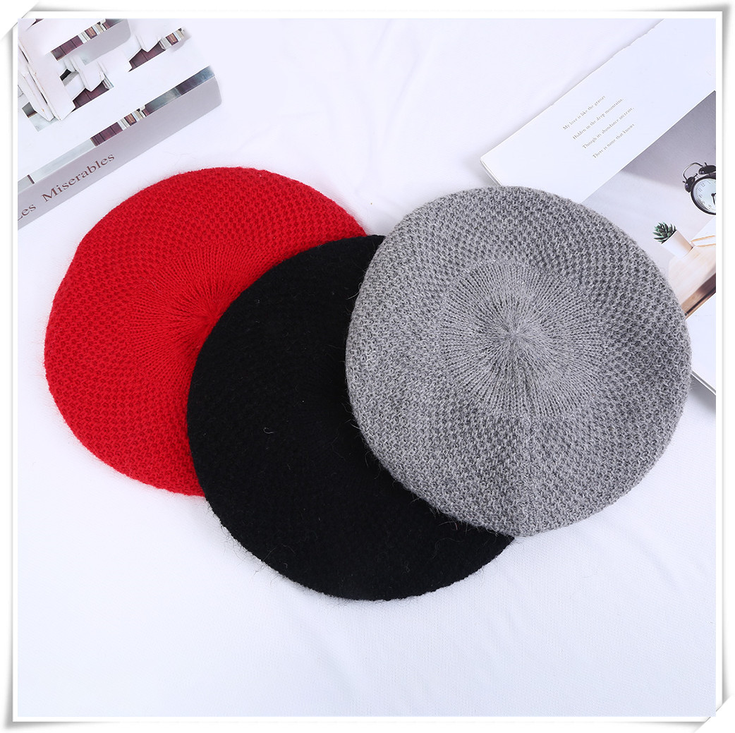 Product Name: Women's Fall and Winter Pure Color Beanie Hat British Korean Edition Japanese Retro Knitted Painter Pumpkin Corolla Hat