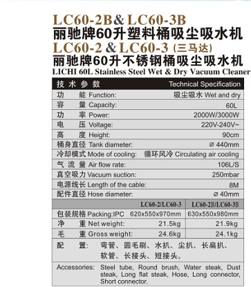 LC60-2 (Three Motors) Lichi Brand 60 L Stainless Steel Barrel Dust Collector