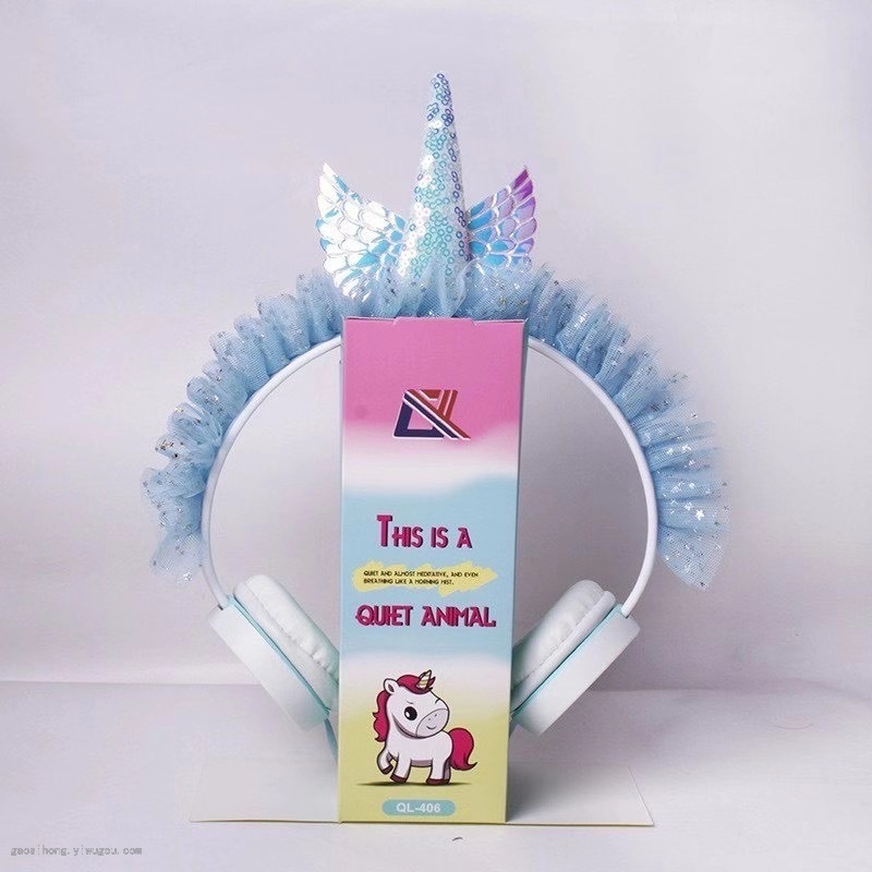 Fashion Color New Children's Cute Cartoon Unicorn Head-Mounted Wired Earphone