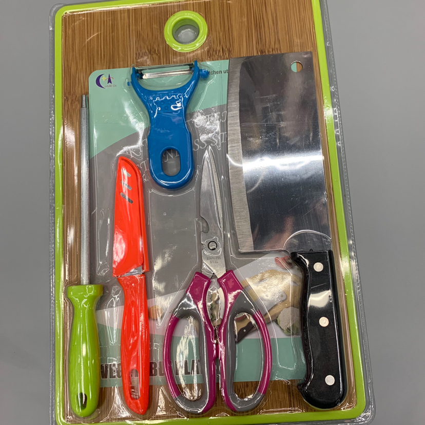 tableware kitchen knives cutting board six-piece set kitchen scissors fruit knife sharpening steel kitchen supplies