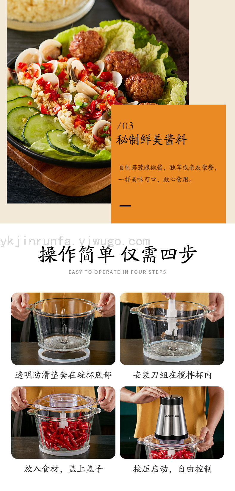 Home electric small meat grinder, mixing meat, dumpling, chopping vegetables, garlic paste multi-functional magic tool