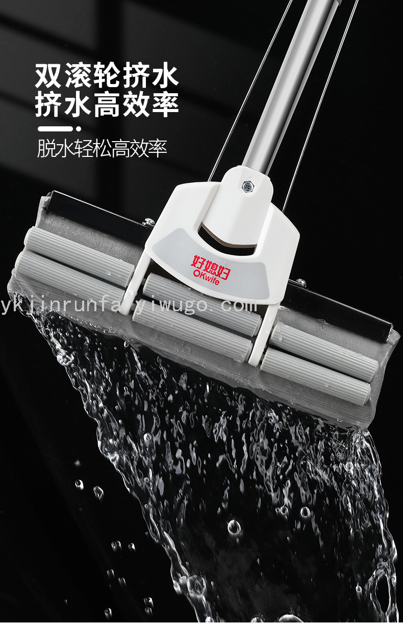 Good wife hand-free home cleaning mop with sponge, dry and wet dual-use, water-absorbing roller, squeezing water sponge, clean and neat, housewife.