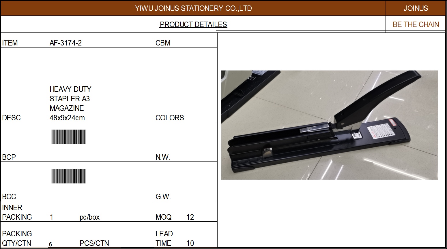 About Product:重型订书机48x9x24cm HEAVY DUTY STAPLER A3 MAGAZINE 48x9x24cm AF-3174-2