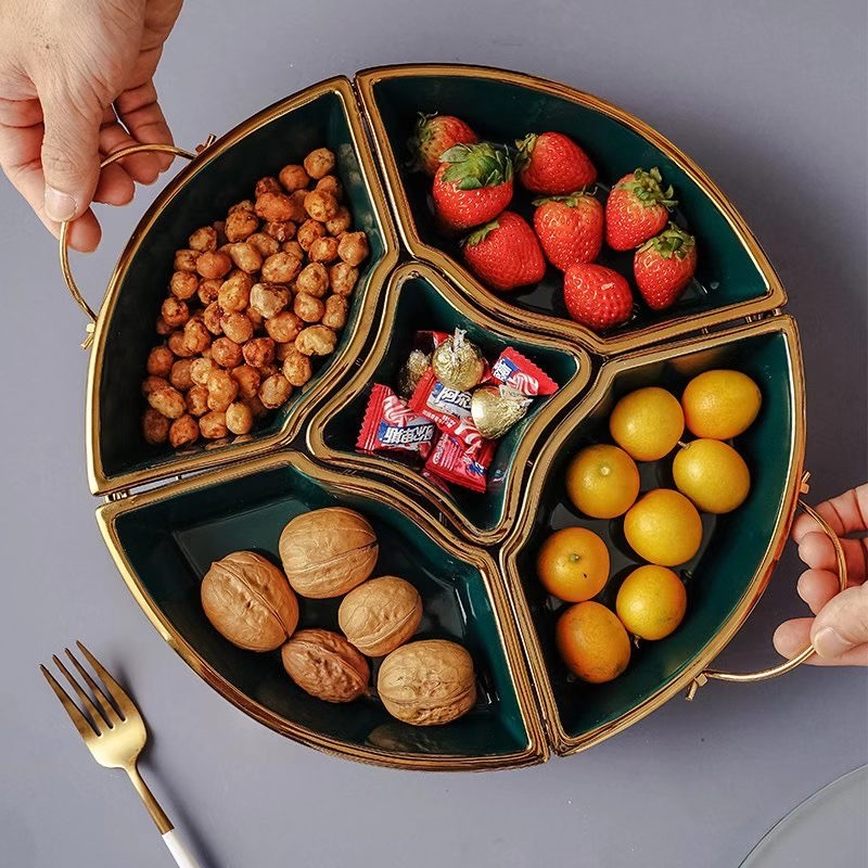 亮光绿釉分格陶瓷果盘 大号:13寸 小号:11.5寸 ,详细请咨询商家,微信电话同15024502314,谢谢。
