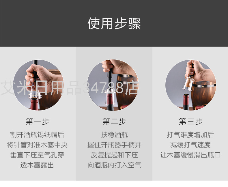 KLT-KH1-001901 Pneumatic Bottle Opener New Cross-Border TikTok Pin Red Wine Pneumatic Bottle Opener