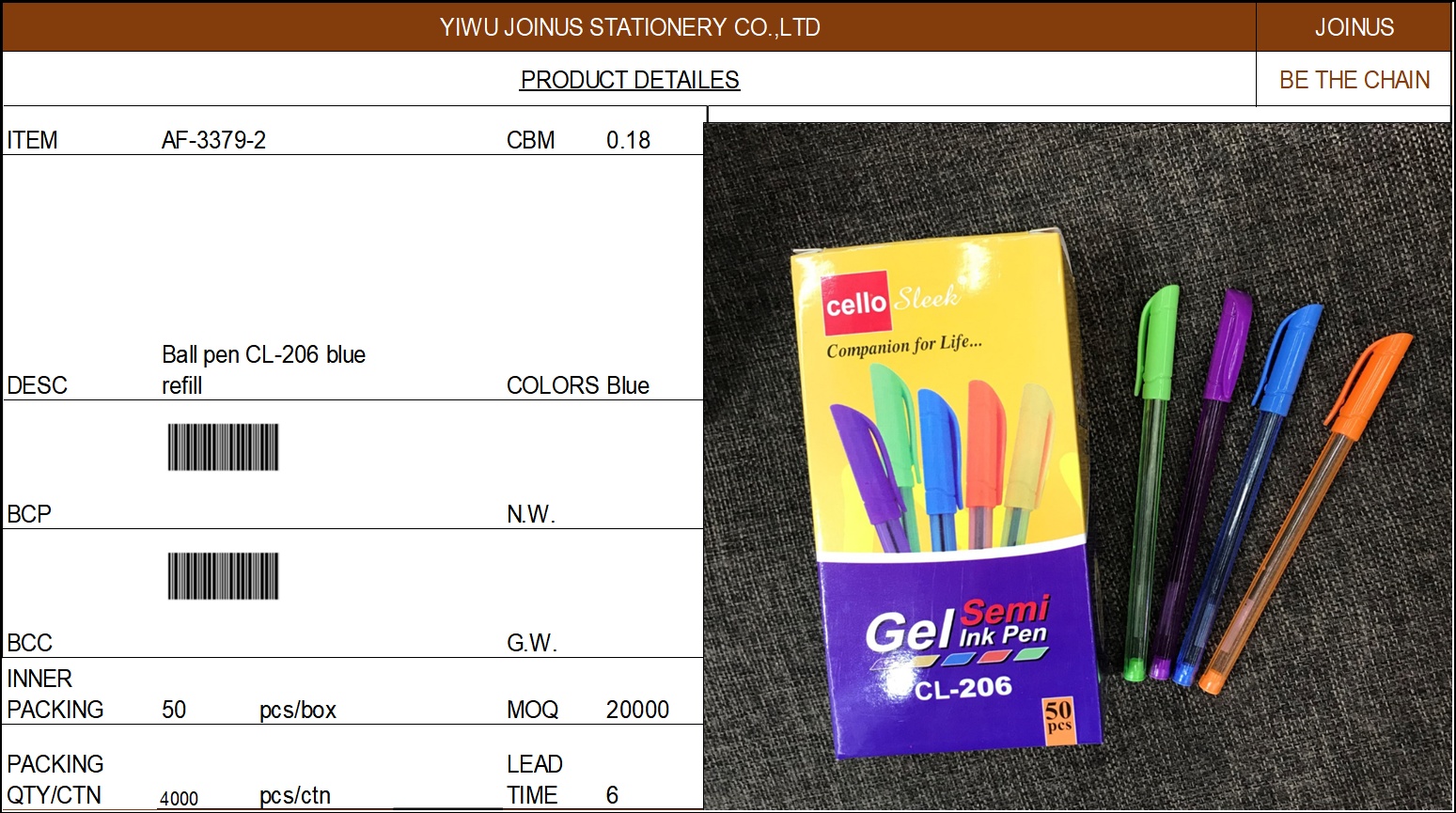 About Product:圆珠笔笔芯蓝色CL-206 Ball pen CL-206 blue refill AF-3379-2