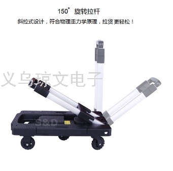 universal mute five-wheel foldable and portable aluminum alloy pull rod pull goods small flat hand push tool trailer