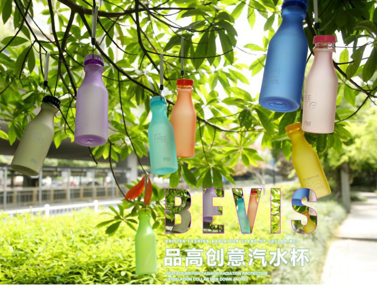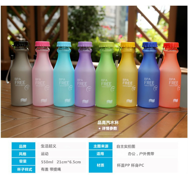 Water bottle plastic cup transparent frosted portable unbreakable sealing sling milk tea cup water cup can be customized