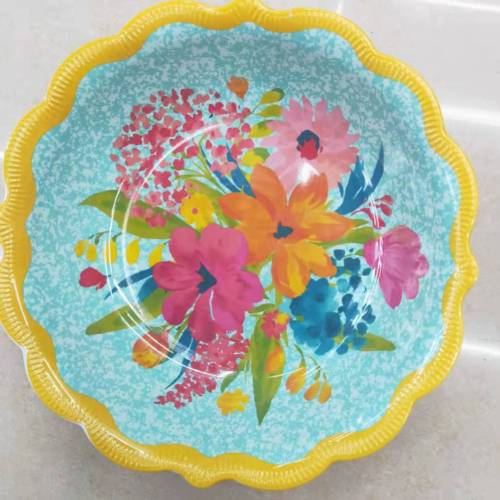 Mina plates are currently widely popular new material plates. Because of their appearance, they have the characteristics of traditional ceramic plates, such as beautiful color, good luster, and good texture, so they are also called imitation porcelain plates. Compared with ceramic plates, they have the advantages of low specific gravity, more vivid colors, and are less likely to break, which is more environmentally friendly; compared with plastic plates, they have the advantages of high specific gravity, suitable hand feeling, non-toxic and odorless, hard and durable, good temperature resistance, and low heat conductivity.