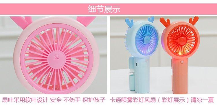 2020 korean style boys and girls hydrating beauty spray handheld fan colorful color changing light usb charging mini fan